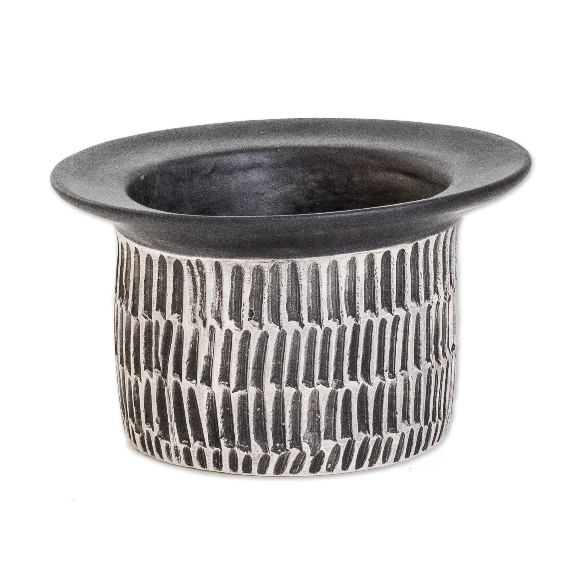 Transform your spaces in a sophisticated environment with this ceramic vase, combining an organic clay finish with hand-painted black accents that make an authentic statement. Created by Guatemalan artisan Lilyan Benecke, its textured surface offers a unique and captivating feature, ideal for a bohemian ambiance or a minimalist breeze.