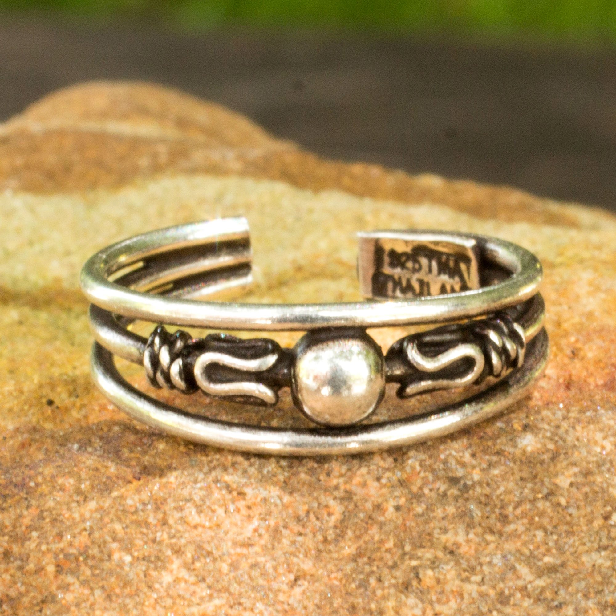 Authentic Thai Toe Ring - Sterling Silver, 'Spherical Sun'