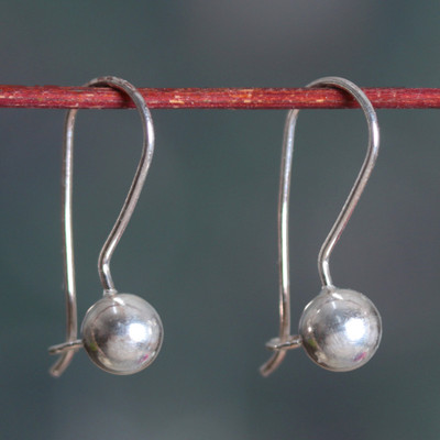 Avant-Garde High-Polished Sterling Silver Drop Earrings, 'Globe Duo'