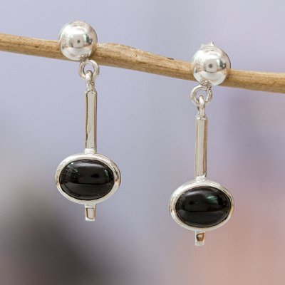 Avant-Garde Natural Obsidian Dangle Earrings from Mexico, 'Enigmatic Tomorrow'