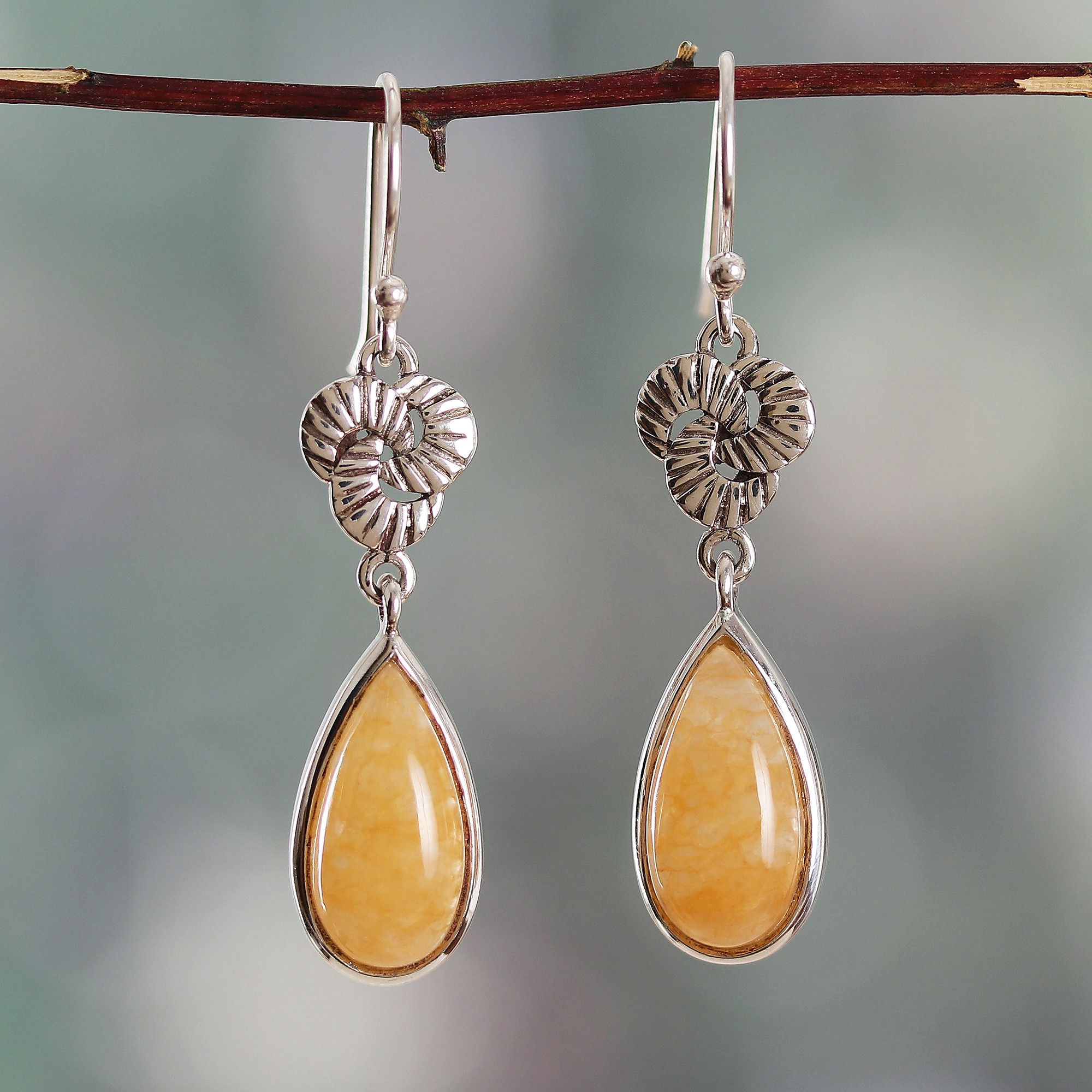 Like captured sunlight, these extraordinary dangle earrings boast the luminous beauty of yellow aventurine. Sterling silver infinity motifs crown the vibrant stones in this spectacular design by India's Shubhra Singh, perfect for adding a touch of color and sophistication.