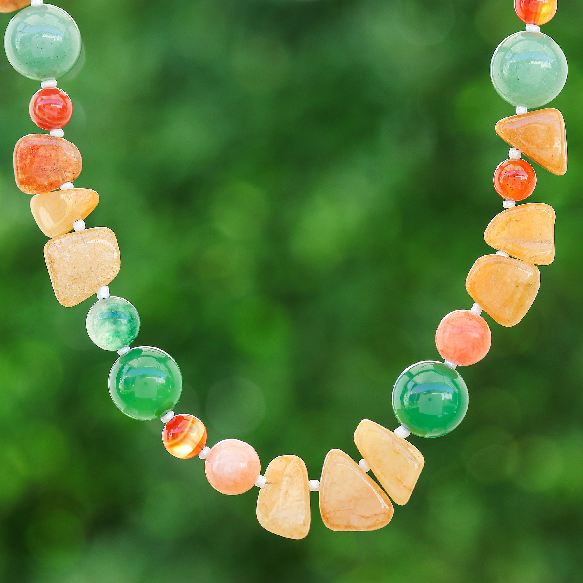 Aventurine Chalcedony Carnelian Quartz Glass Beaded Necklace, 'Energizing Vibes'