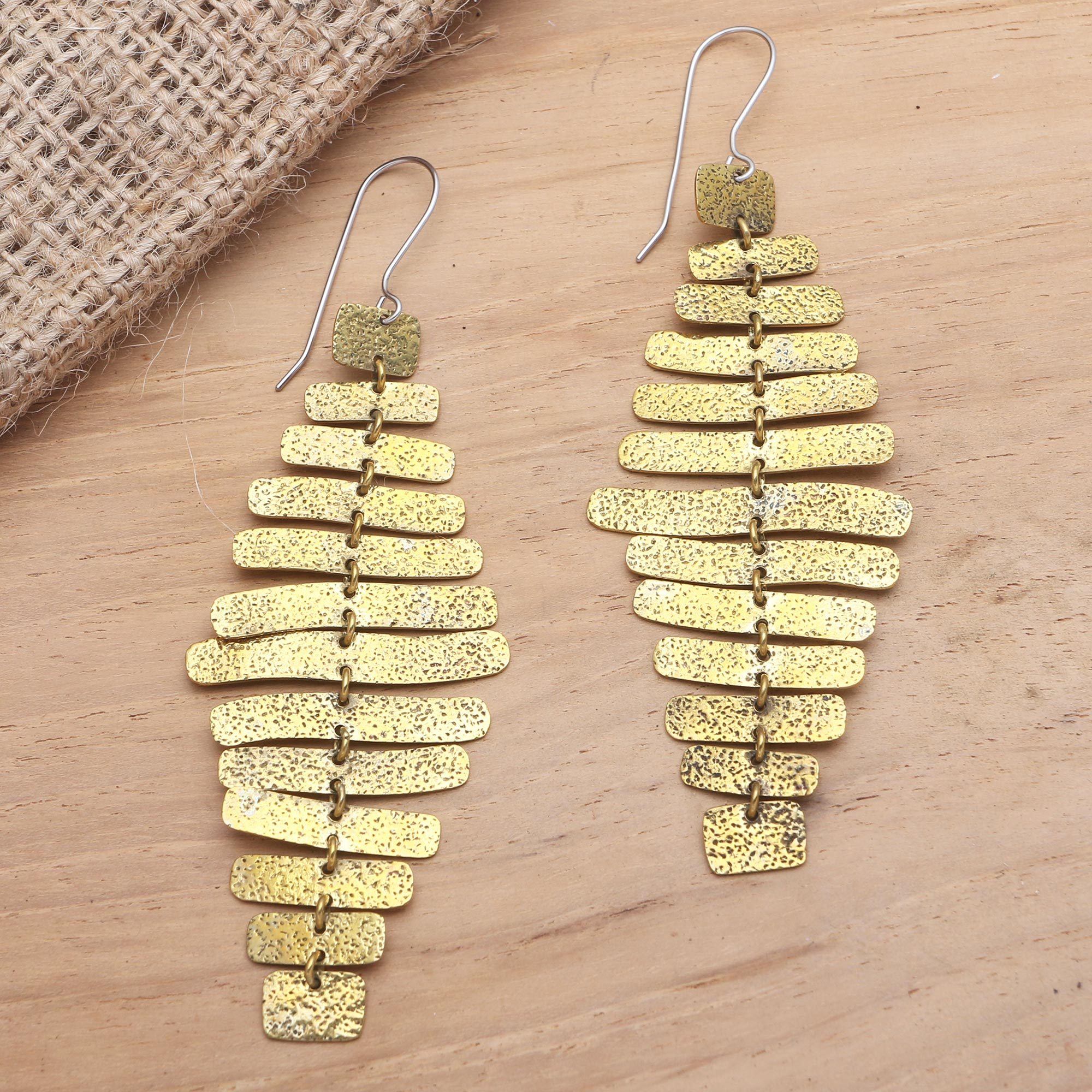 Balinese Brass Dangle Earrings on Stainless Steel Hooks, 'Horizontal Bars in Yellow'