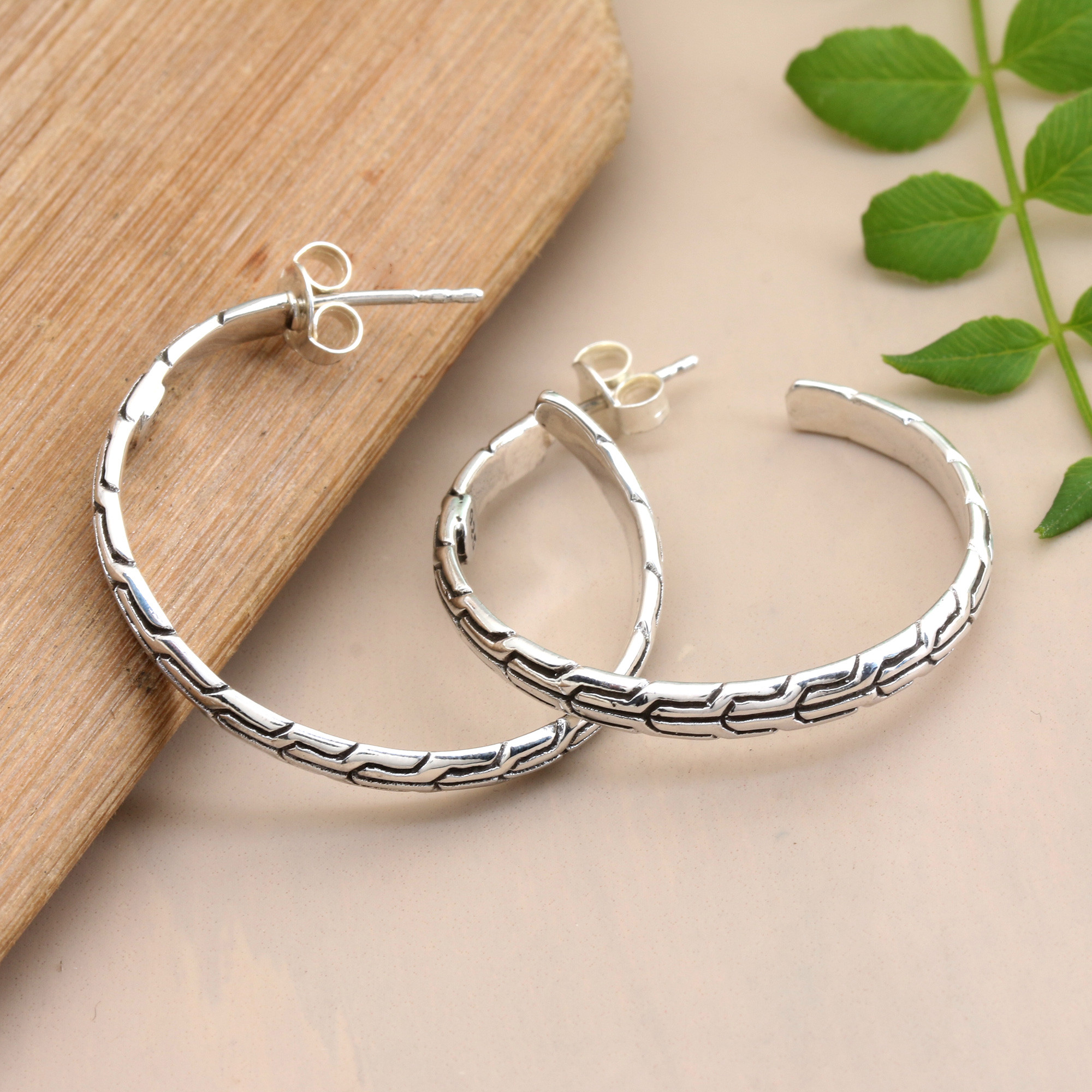 Balinese-Inspired Modern Sterling Silver Half-Hoop Earrings, 'Roads to Elegance'