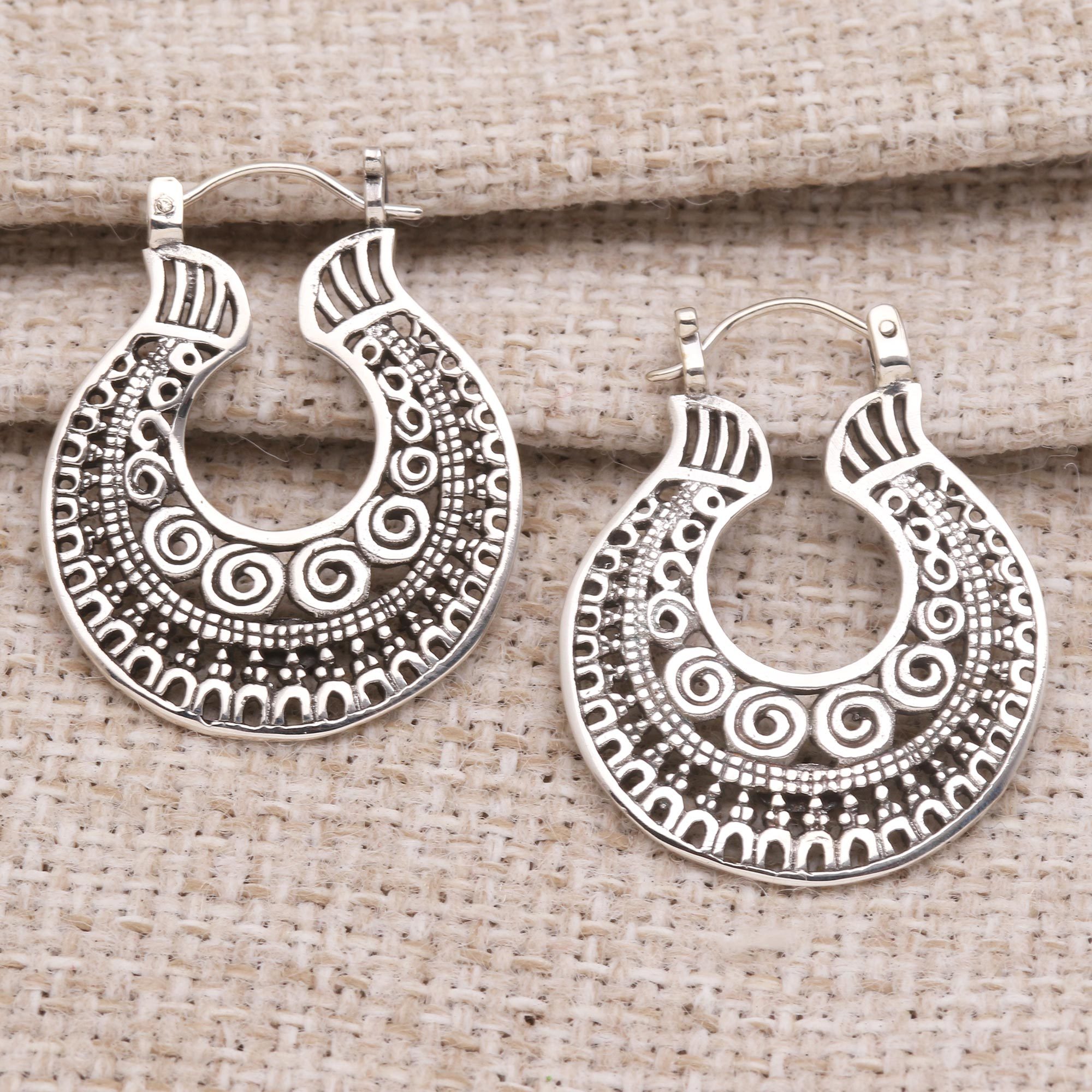 Balinese Sterling Silver Hoop Earrings, 'Ancient Spirals'