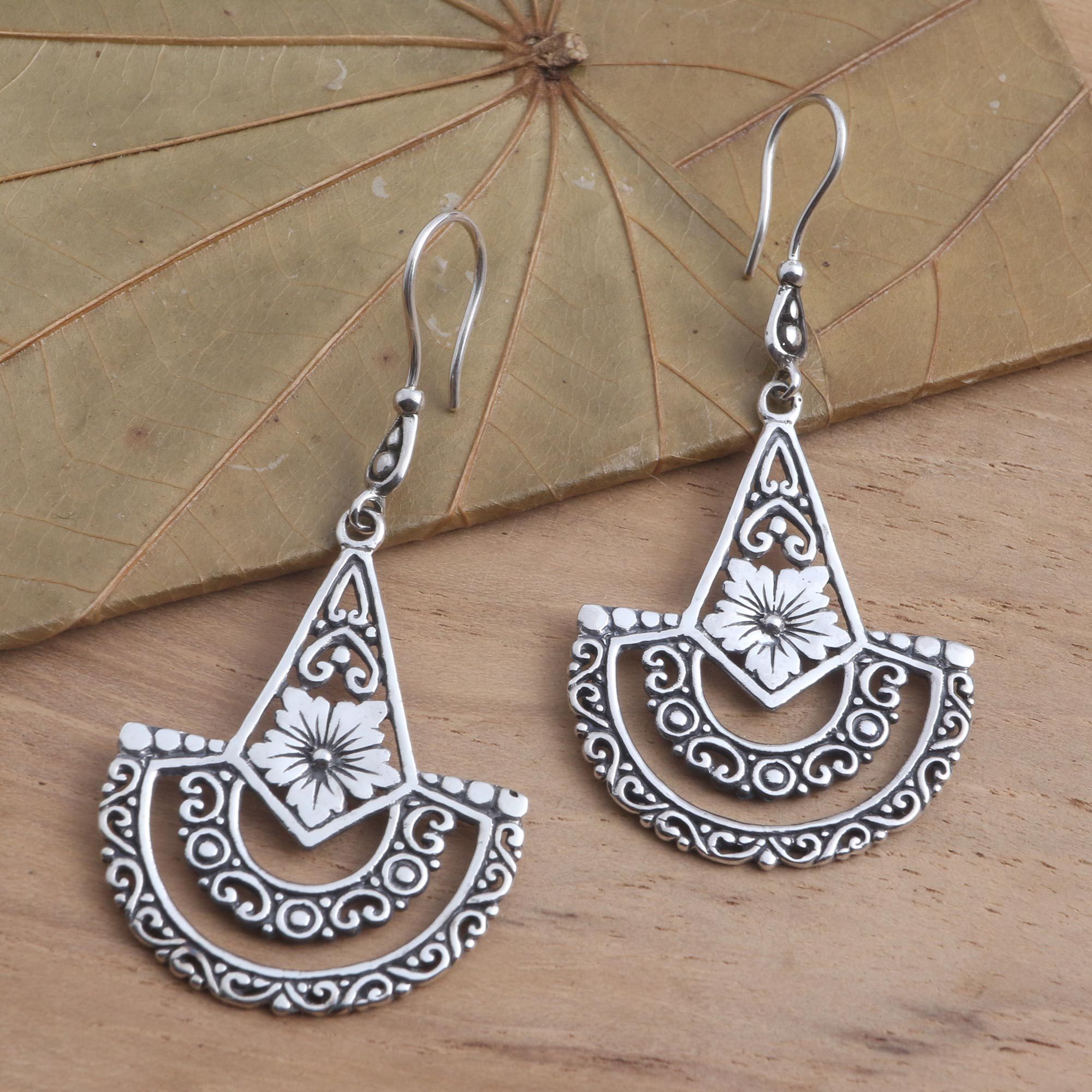 Balinese Style Sterling Silver Dangle Earrings, 'Sacred Blossom'