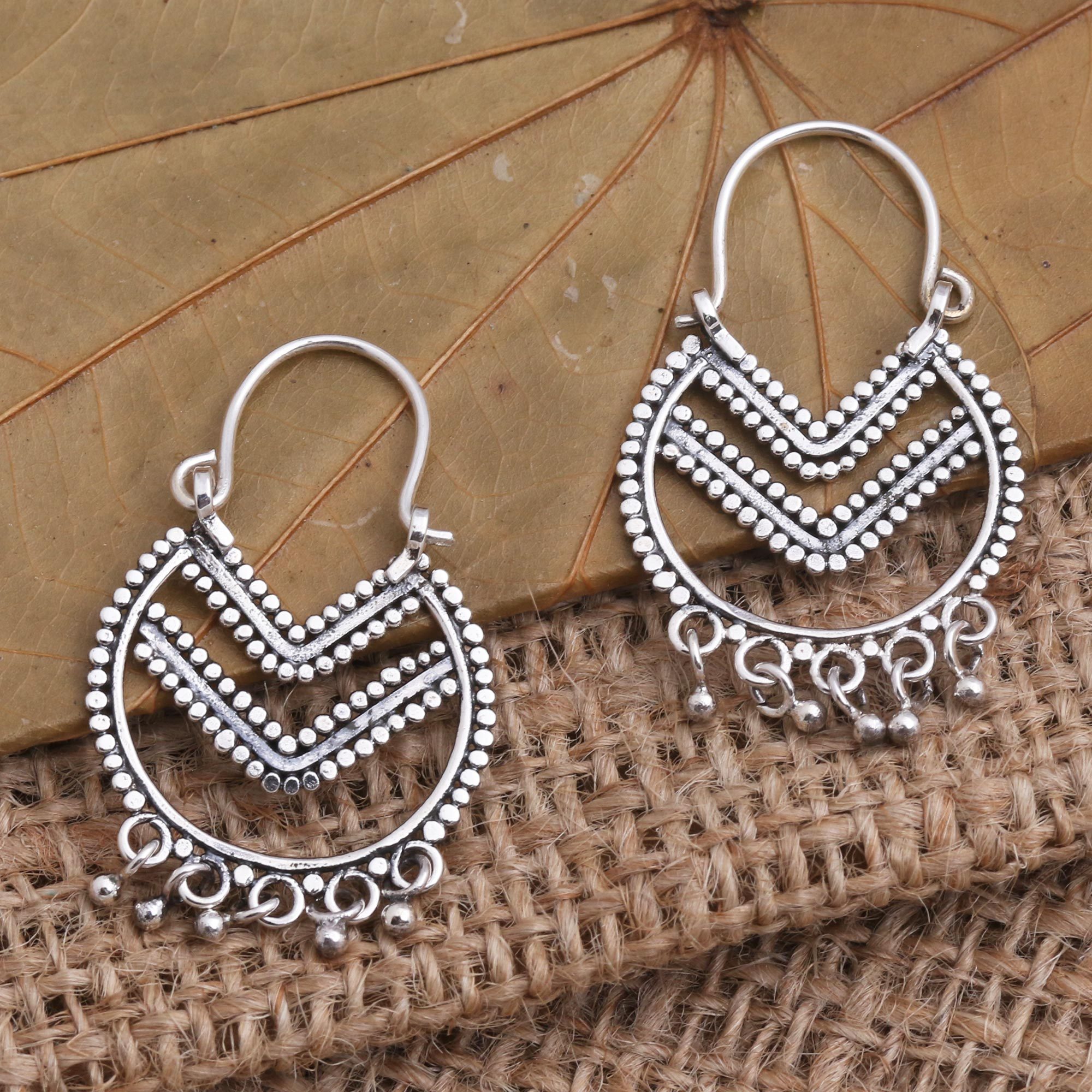 Balinese Style Sterling Silver Hoop Earrings, 'Celuk Chevron'