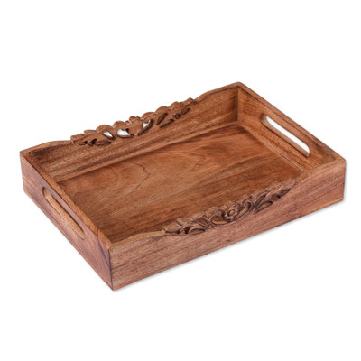 Tradition and classic artistry reunite in the Mela Artisans' newest creation. Crafted in India, mango wood composes the baroque-inspired details decorating this tray, whose practical design allows you to share a little biscuit with a loved one.