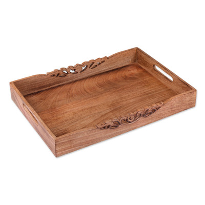 Tradition and refined artistry reunite in the Mela Artisans' newest creation. Crafted in India, mango wood composes the baroque-inspired details embellishing this tray, whose practical design allows you to share a biscuit with a loved one.