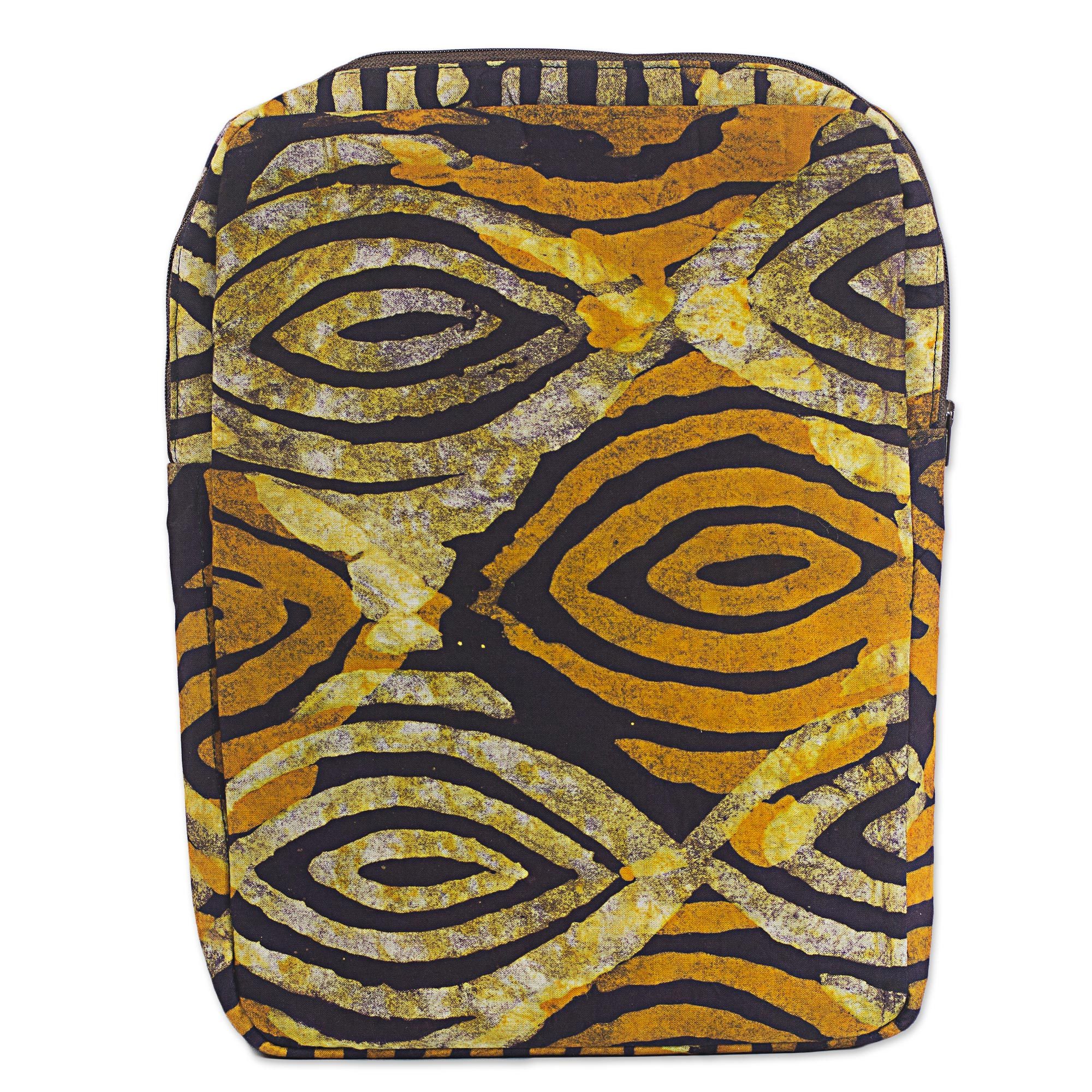 Batik Printed Cotton 10 In Tablet Sleeve in Saffron Espresso, 'Saffron Eyes'