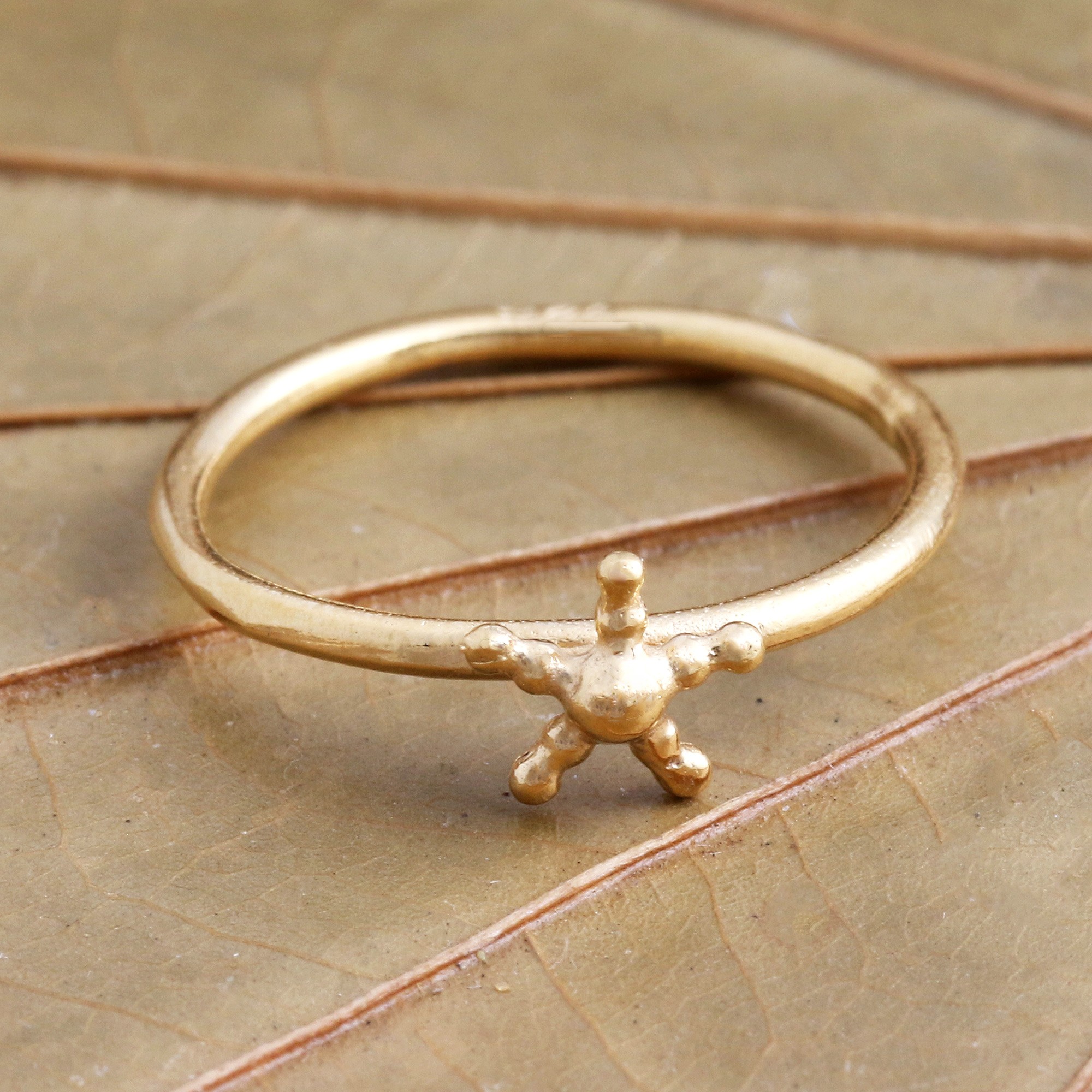 This dainty band ring from Ketut Sulastri in Bali is an understated way to express your style. The slender band and beaded star accent are crafted of 18k gold plated sterling silver.