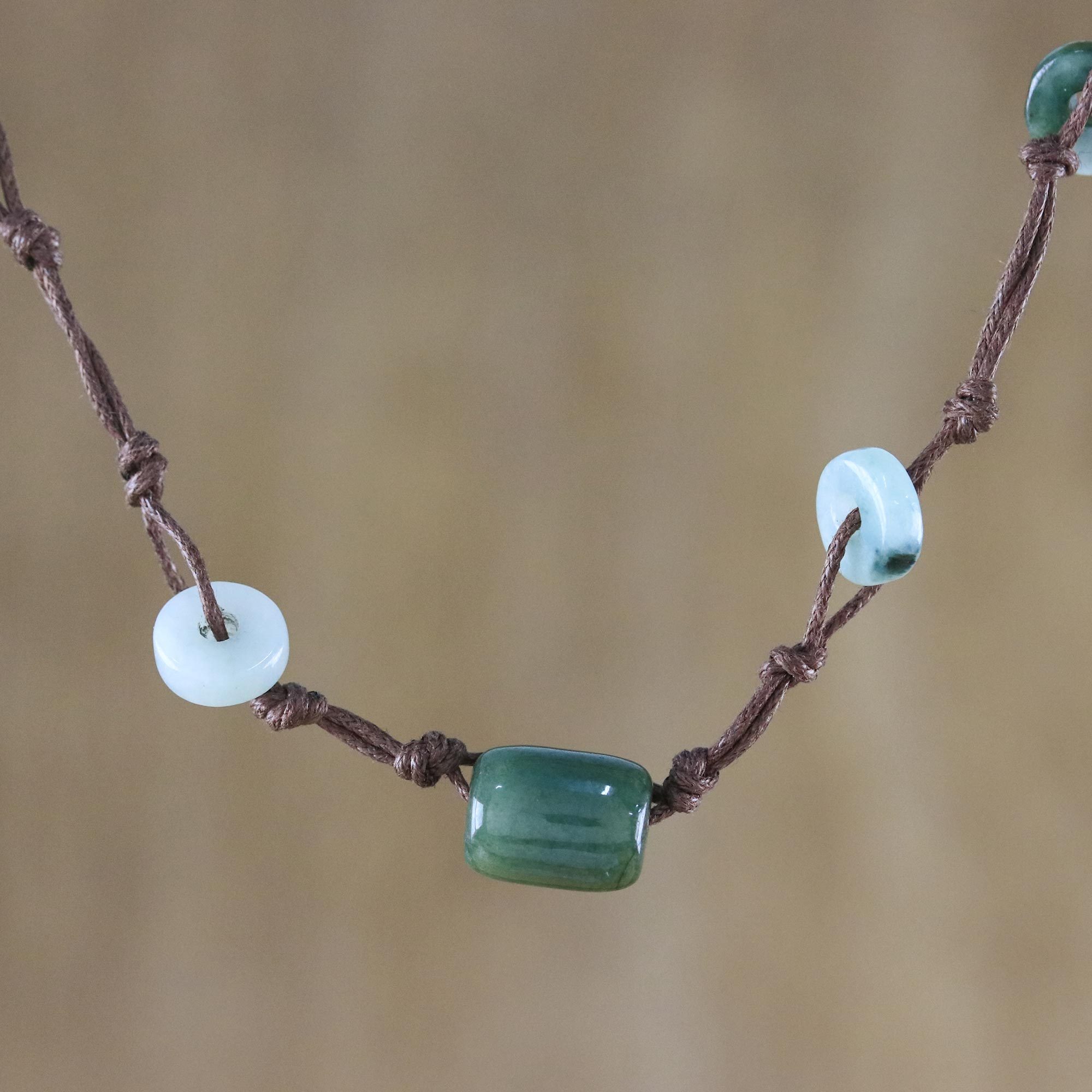 Beaded Jade Necklace, 'Harmonious Life'