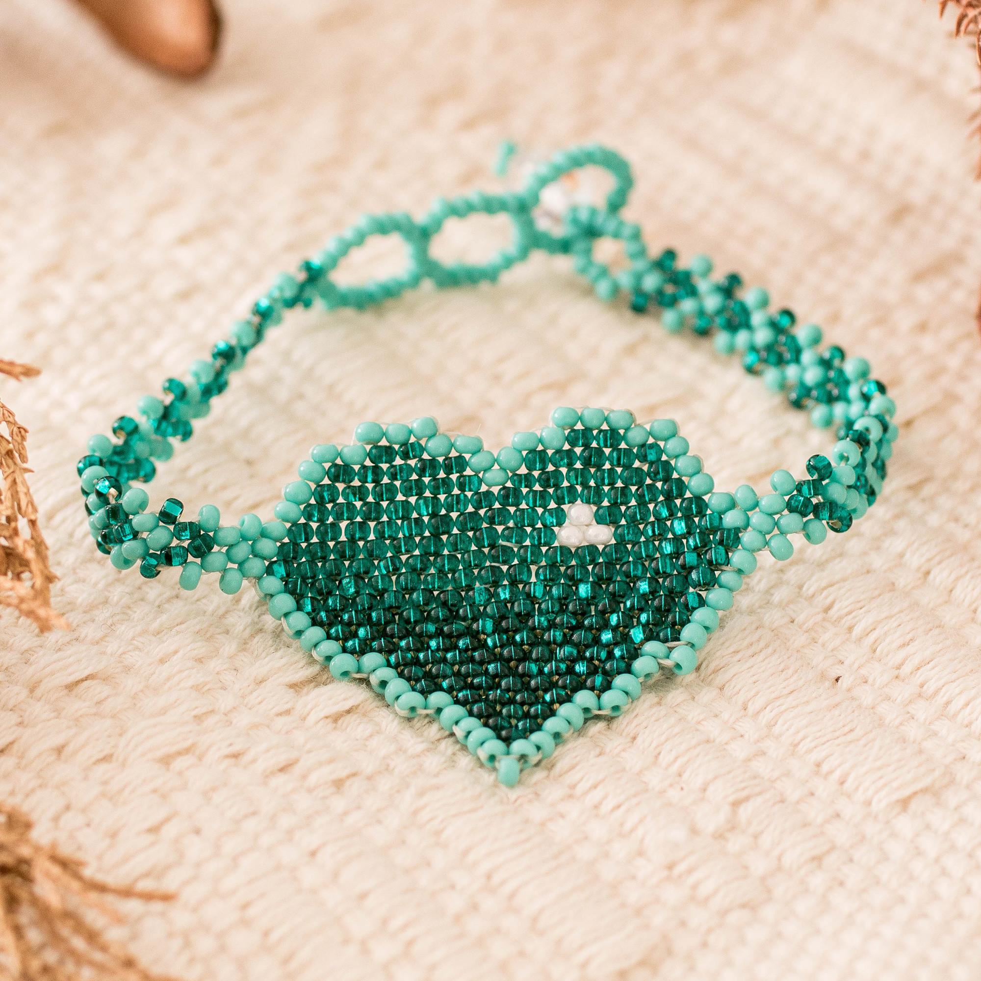 Beaded Pendant Bracelet in Turquoise with Heart Motif, 'Turquoise Love Inspiration'