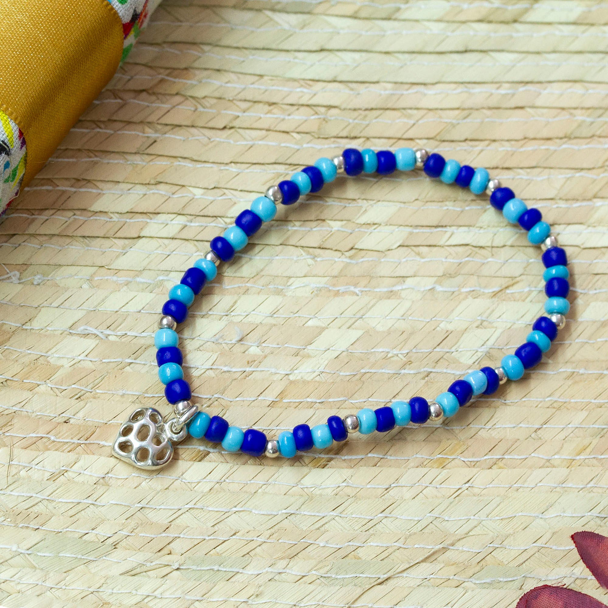 Ignite your passion for style with Mexican artisan Angel Ortiz's gorgeous heart stretch bracelet. Highlighted by an openwork sterling silver charm, this awe-inspiring accessory intersperses colorful glass beads and lustrous silver beads, making it a cherished addition to your collection.