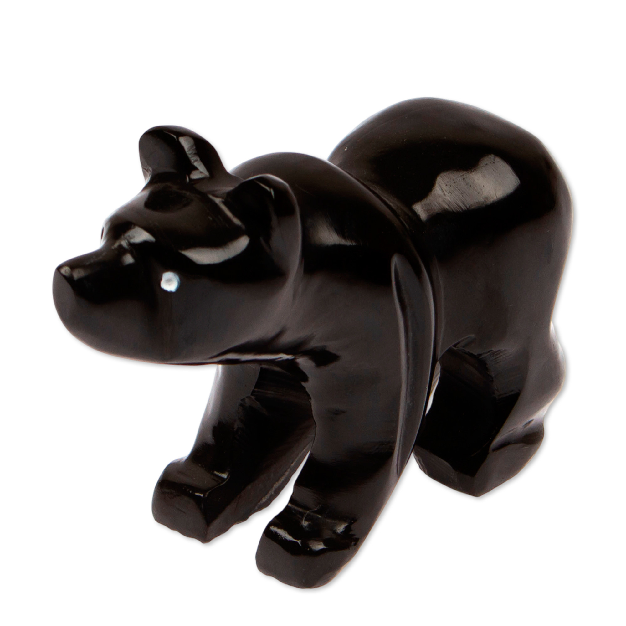 Bear-Themed Modern Carved Small Marble Sculpture in Black, 'Onyx Curious Bear'