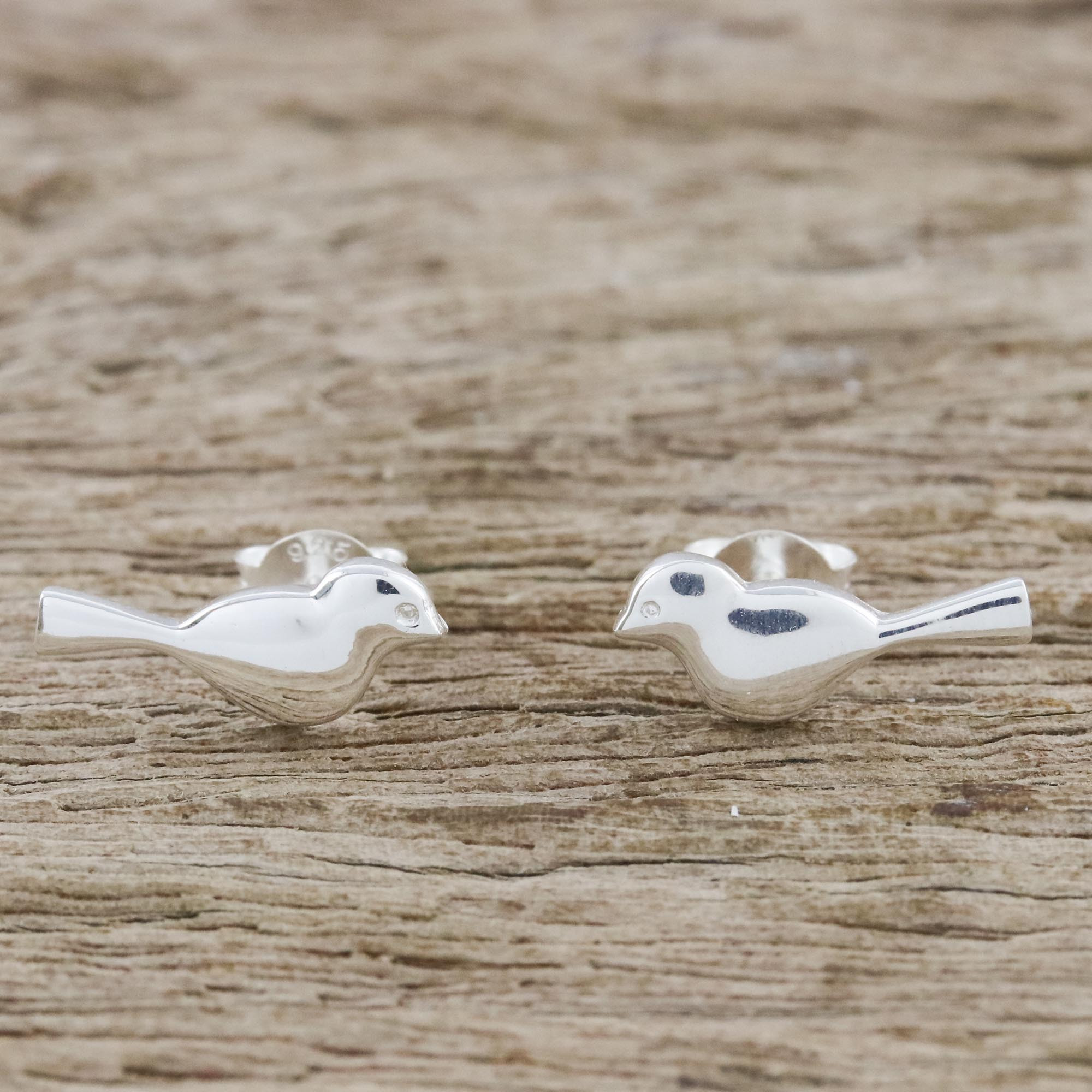 Bird-Shaped Sterling Silver Stud Earrings from Thailand, 'Dainty Birds'