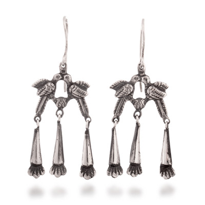Turn heads with these stunning sterling silver chandelier earrings that capture the graceful essence of birds through intricate metalwork and breathtaking detail. Each delicate stroke is meticulously crafted to mirror nature's own artistry while the oxidized finish adds a vintage patina that whispers of handcrafted heritage and timeless appeal. These sophisticated accessories from Peru's Teodoro Melendez and Family cascade beautifully, their avian-inspired silhouettes creating movement and visual poetry that complements any occasion with natural elegance.