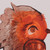 India's Sunil Jaiswal works with acrylics on paper to execute this charming naif painting featuring a rounded bird with a large, expressive eye and a simplified, rounded body. The primary colors are shades of warm reds, deep oranges and terracotta browns, blended to give the bird volume. A distinctive feature is the large, fan-like plume of feathers extending from the back of the head, which transitions from dark orange-brown near the body to lighter, muted tones of grey and white at the tips, creating a textured, layered effect. The edges are jagged and sharp, adding a dynamic, almost punk-rock flair to the otherwise sweet creature.