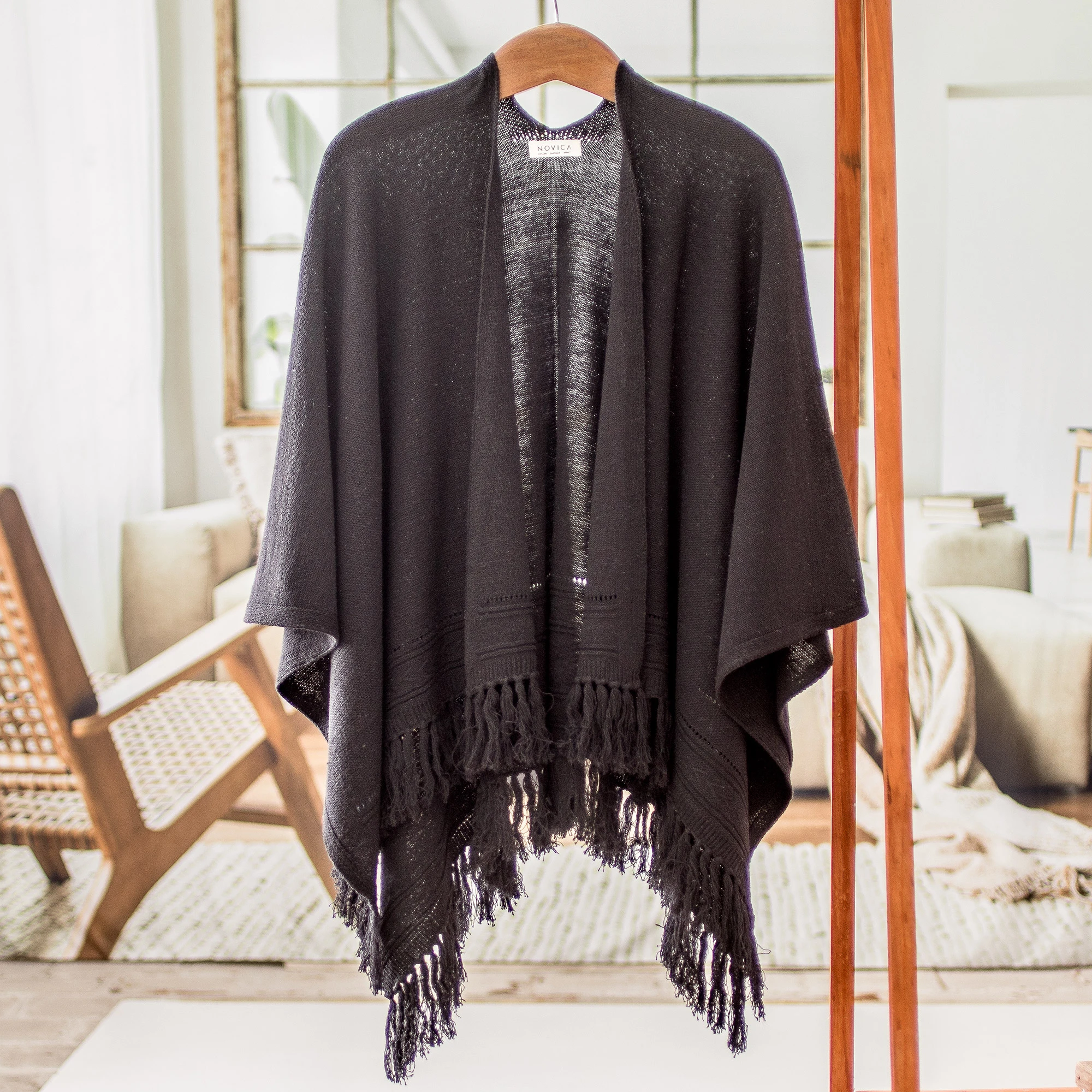 Natural cotton farmed on the family lands of LuisaVillavicencio in Guatemala, features no dyes to createtheir unique colors. She designs this trendy ruana perfectfor mid-season layering with a fringed hem for a bohotouch.