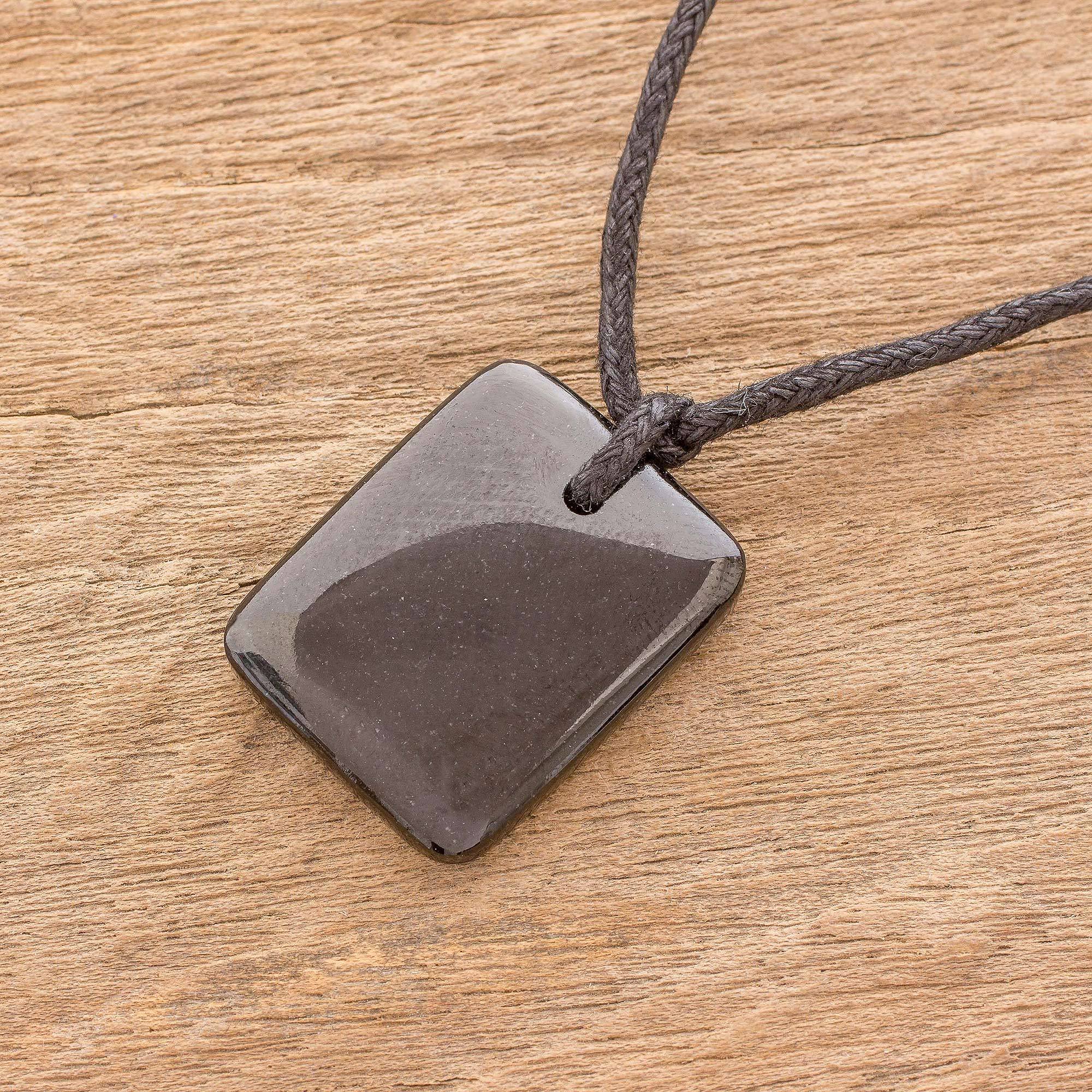 Black Jade Pendant Necklace with Cotton Cord, 'Maya Glory'