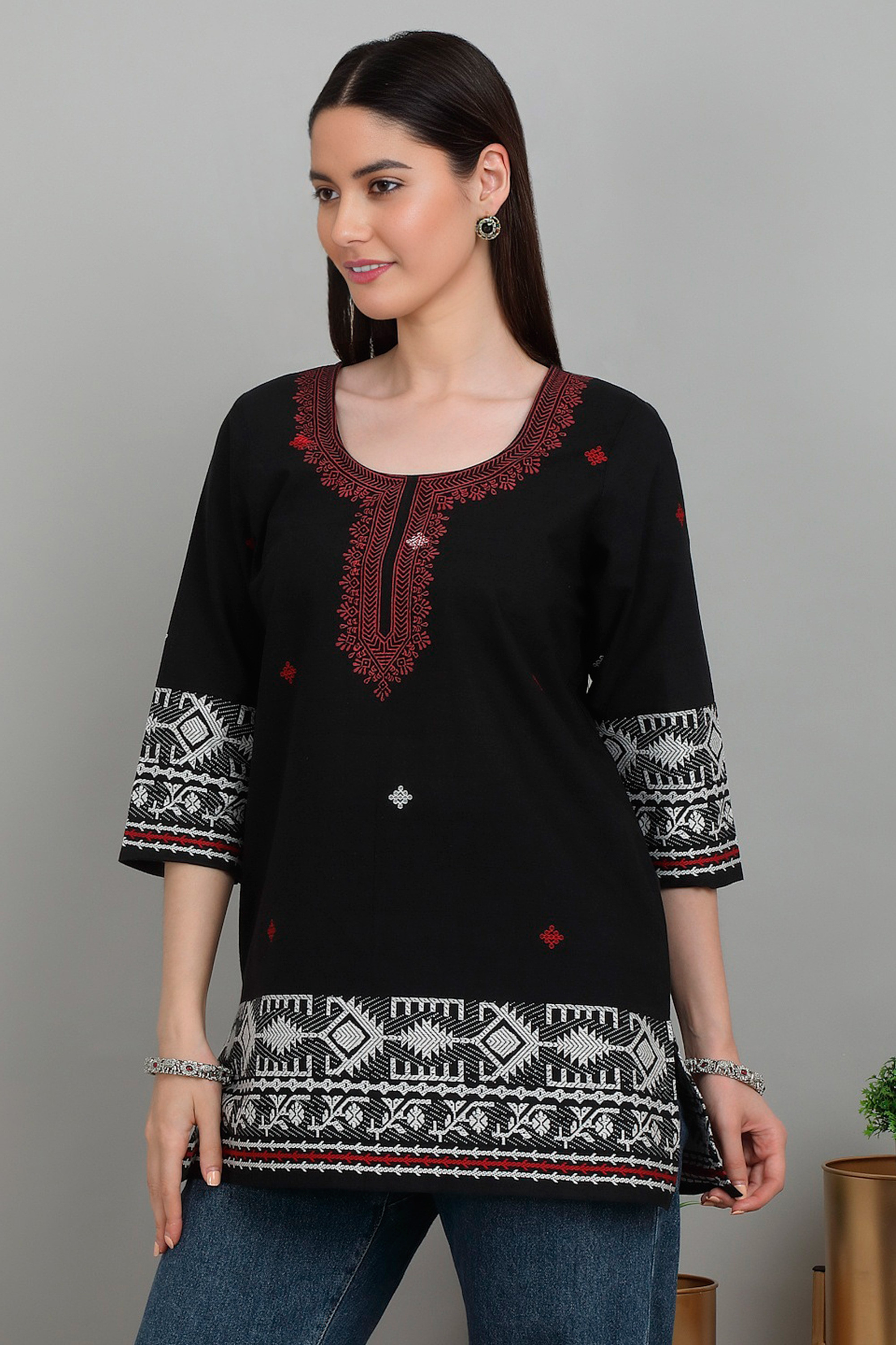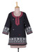 Block-Printed Cotton Tunic with Jamdani Handwoven Motifs, 'Jamdani Splendor'