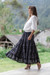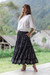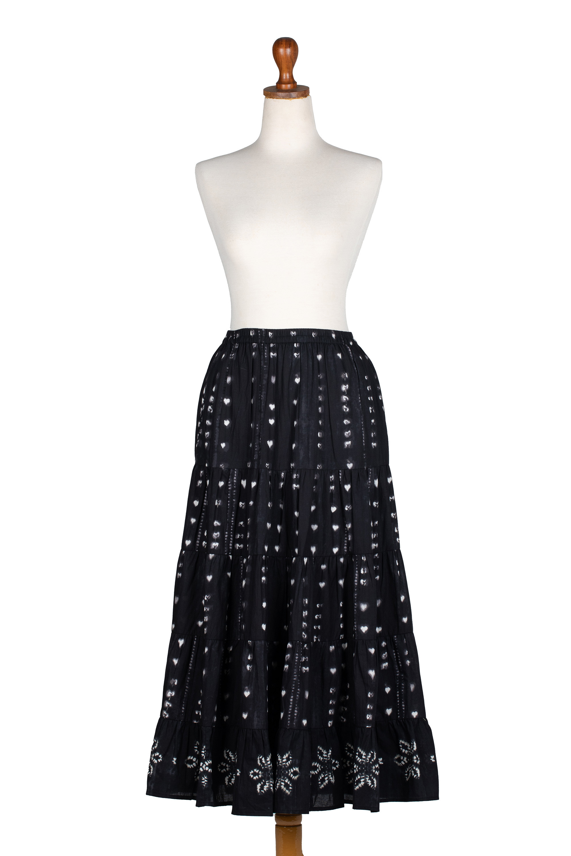 Bloom and Heart-Themed Tie-Dye Black Cotton Skirt from India, 'Twilight'