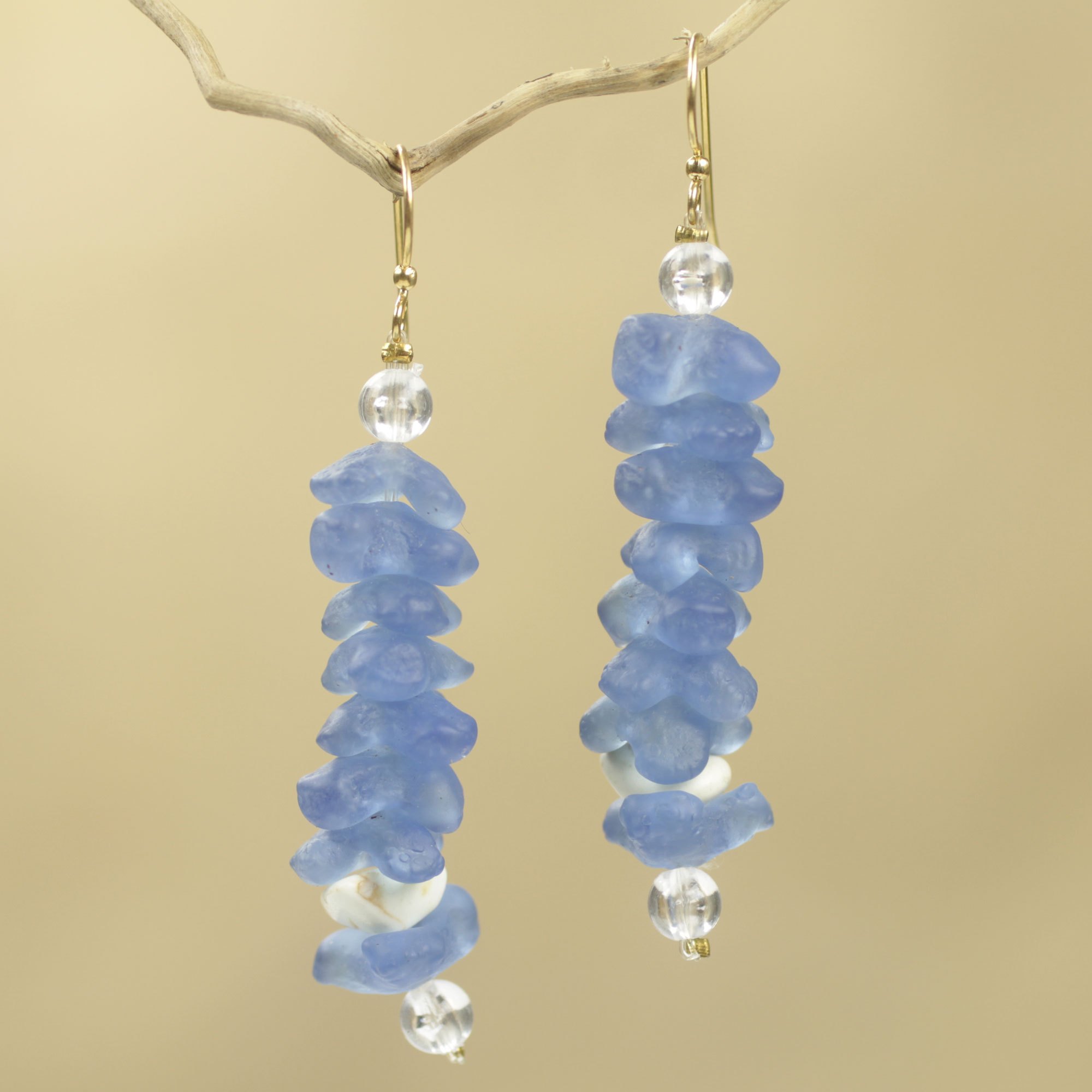 Sky blue beads surround white agate clouds in the dazzling design of these earrings by Rita Addo Zakour. The earrings are crafted by hand with recycled glass beads and finished with smaller recycled plastic beads.