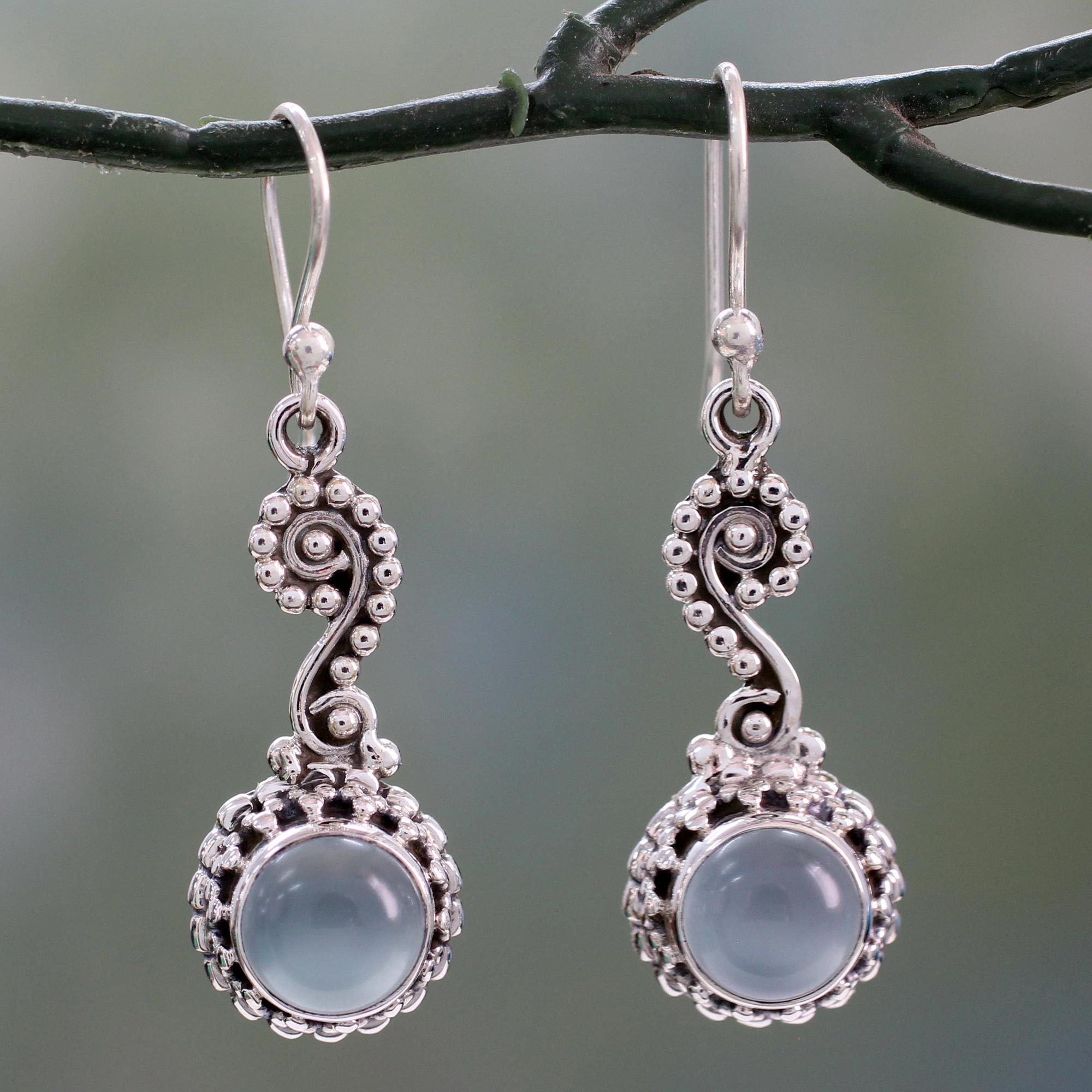 Blue Chalcedony Cabochon and Sterling Silver Dangle Earrings, 'Serene Paisley'
