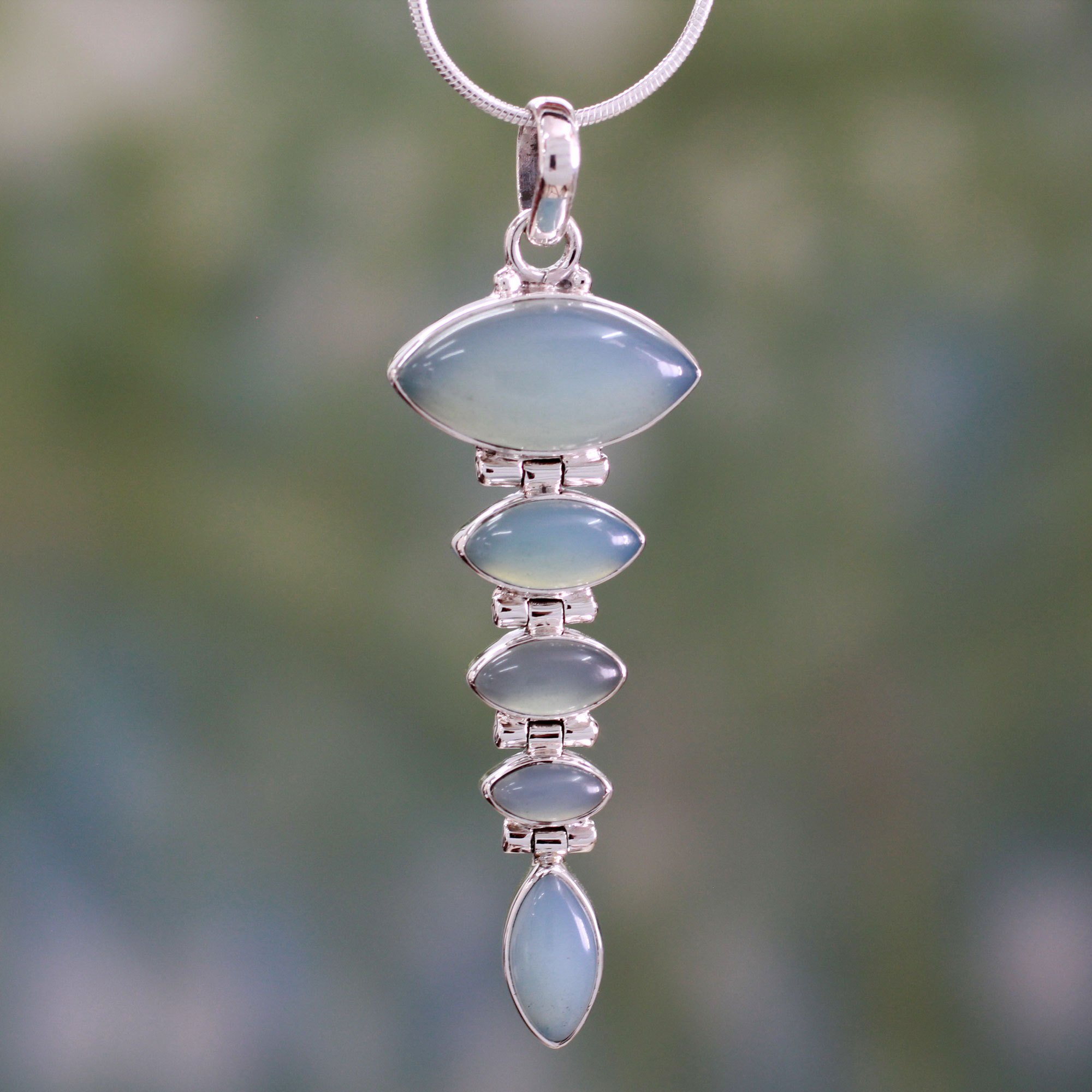 Blue Chalcedony Pendant on Sterling Silver Necklace, 'India Blue'
