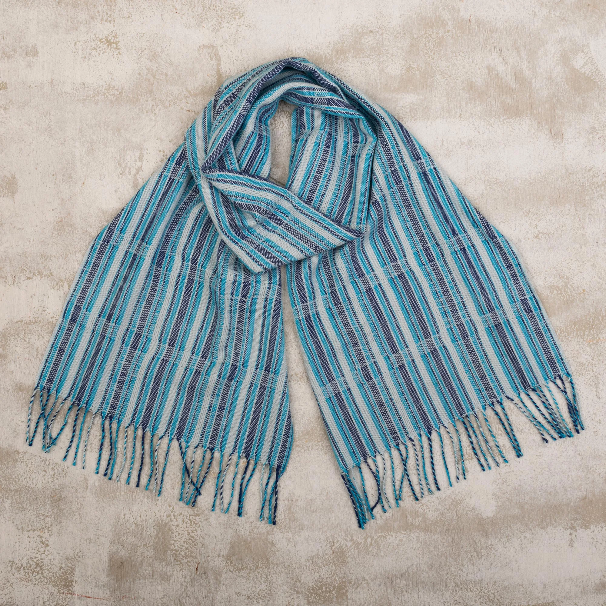 Blue Striped Baby Alpaca Scarf, 'Aqua Lines'