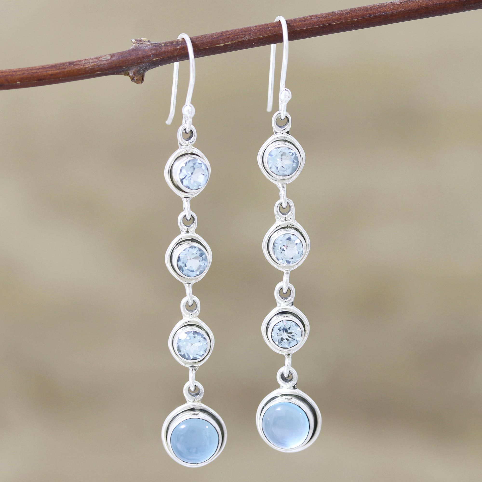 Blue Topaz and Chalcedony Earrings from India, 'Blue Showers'
