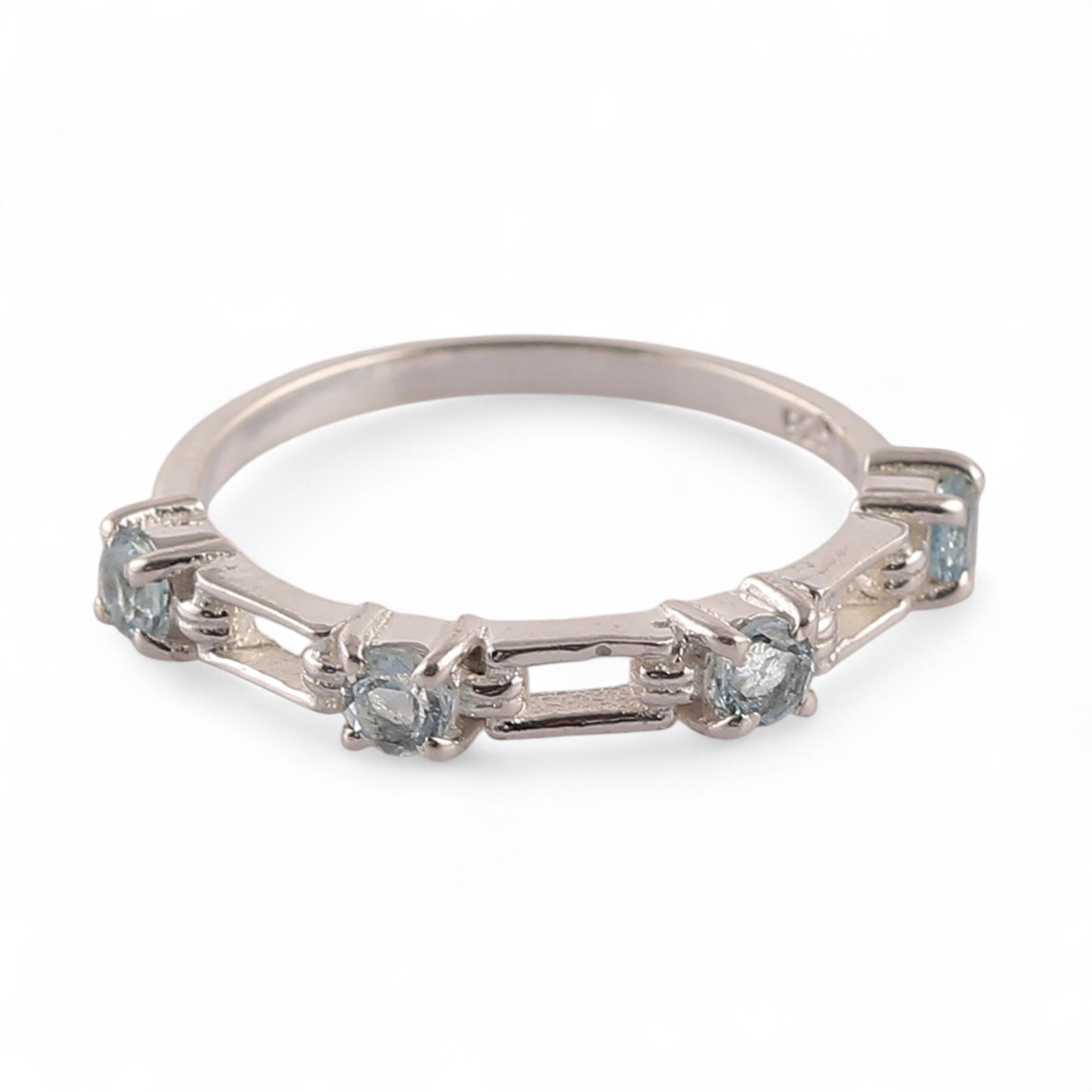 Blue Topaz and Silver Multi-Stone Ring with Openwork Accents, 'Eternity Inspired'