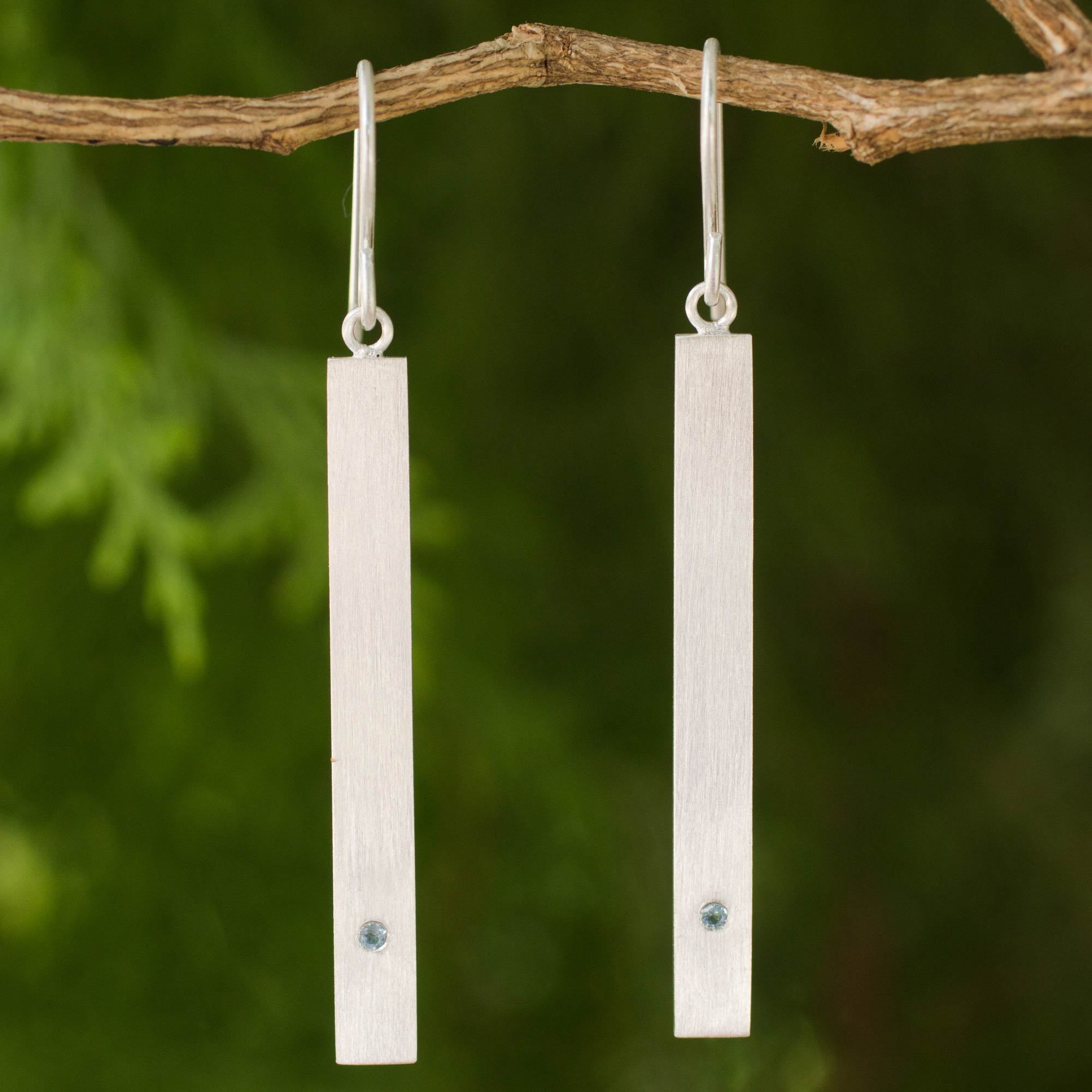 Blue Topaz and Sterling Silver Bar Earrings Thai Jewelry, 'Simply Love'