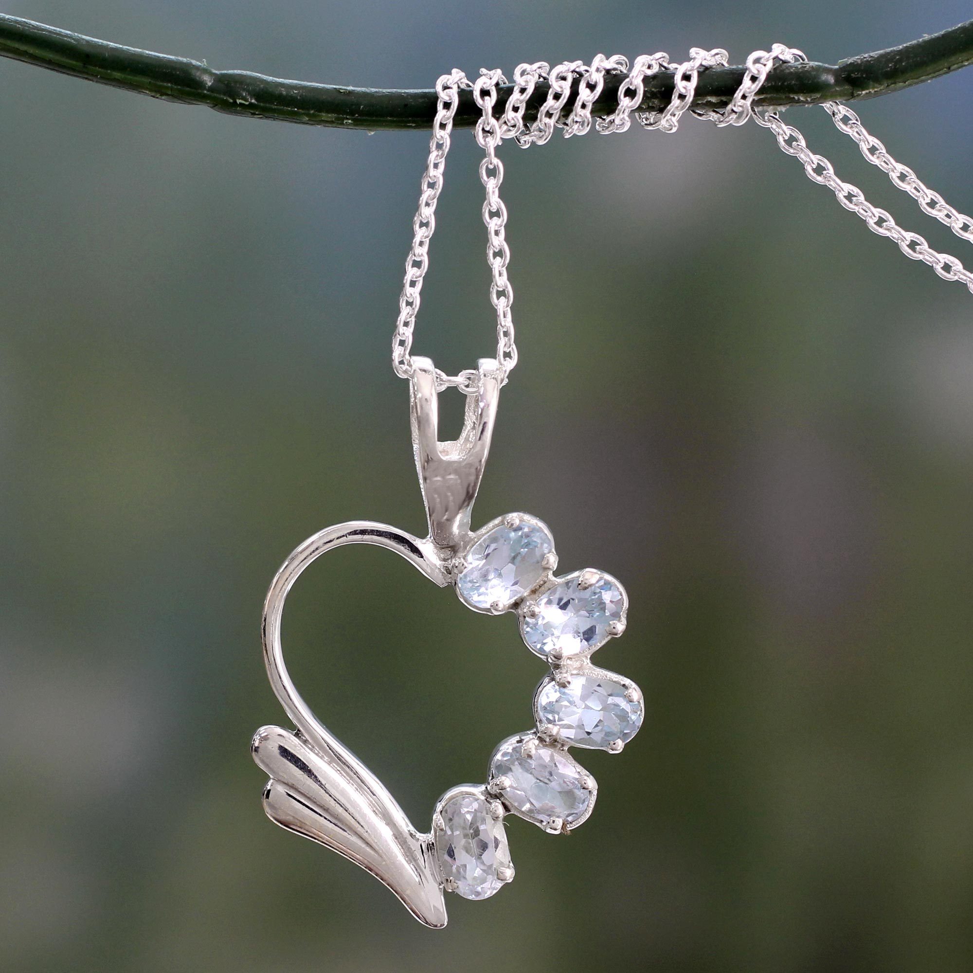 This fabulous heart beats with exquisite elegance. Designed by Aparna, it features luminous wings that are crafted with sterling silver. Blue topaz gems stud one half of the heart which dangles from a fine chain.