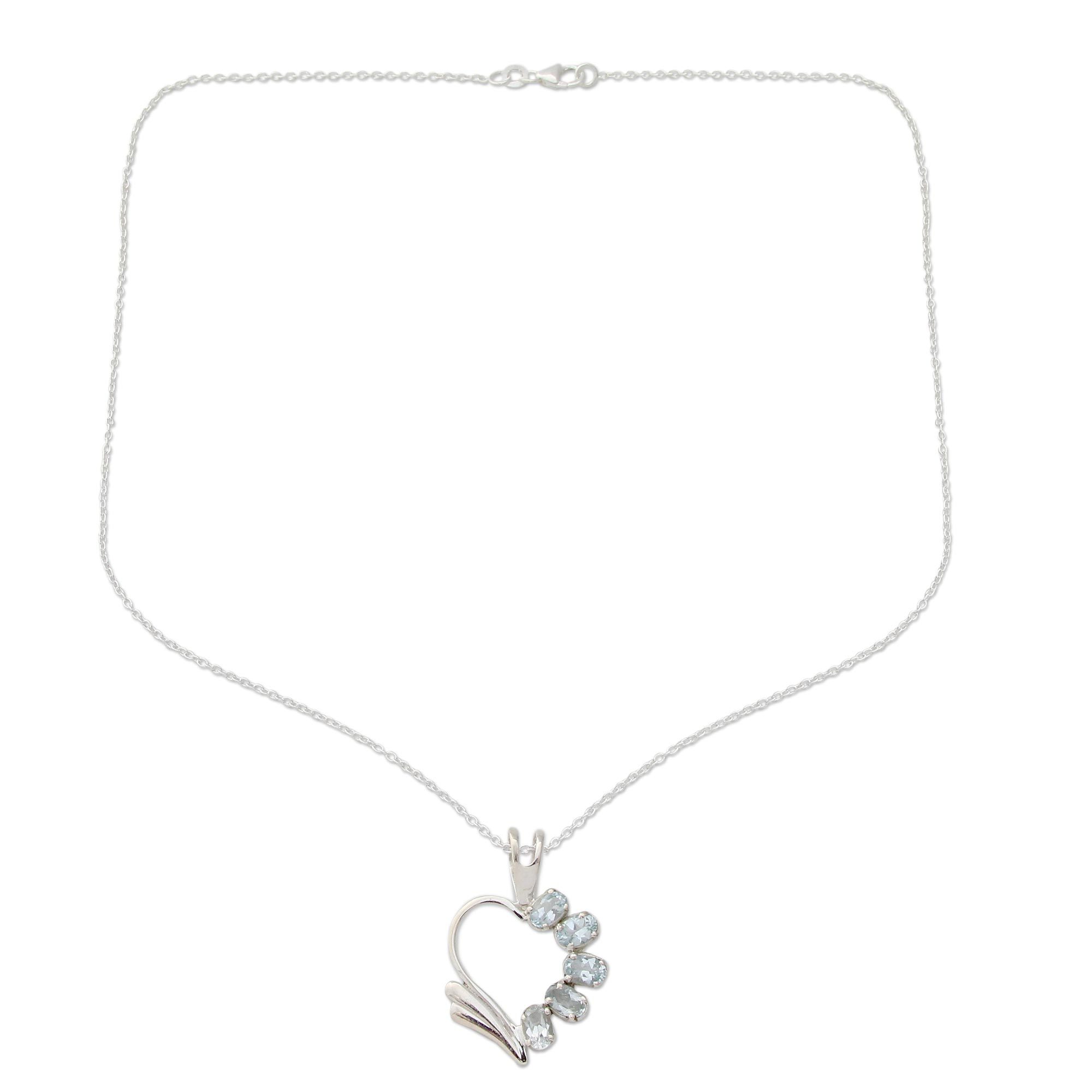Blue Topaz Heart Necklace, 'Winged Heart'