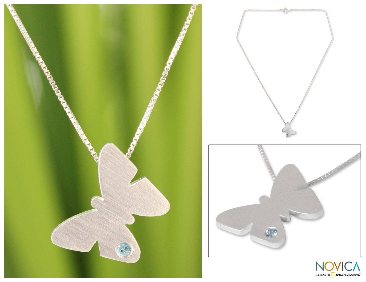 A twinkling blue topaz draws attention to the exquisite presence of a sterling silver butterfly. Designed by Jantana, the pendant's minimalist aesthetics feature a brushed satin finish.