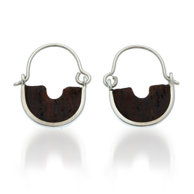 Bocote Wood-Accented Sterling Silver Half-Moon Hoop Earrings, 'True Half-Moon'