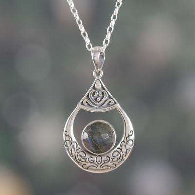 Bohemian Silver Necklace with Natural Labradorite Pendant, 'Regal Luxe'
