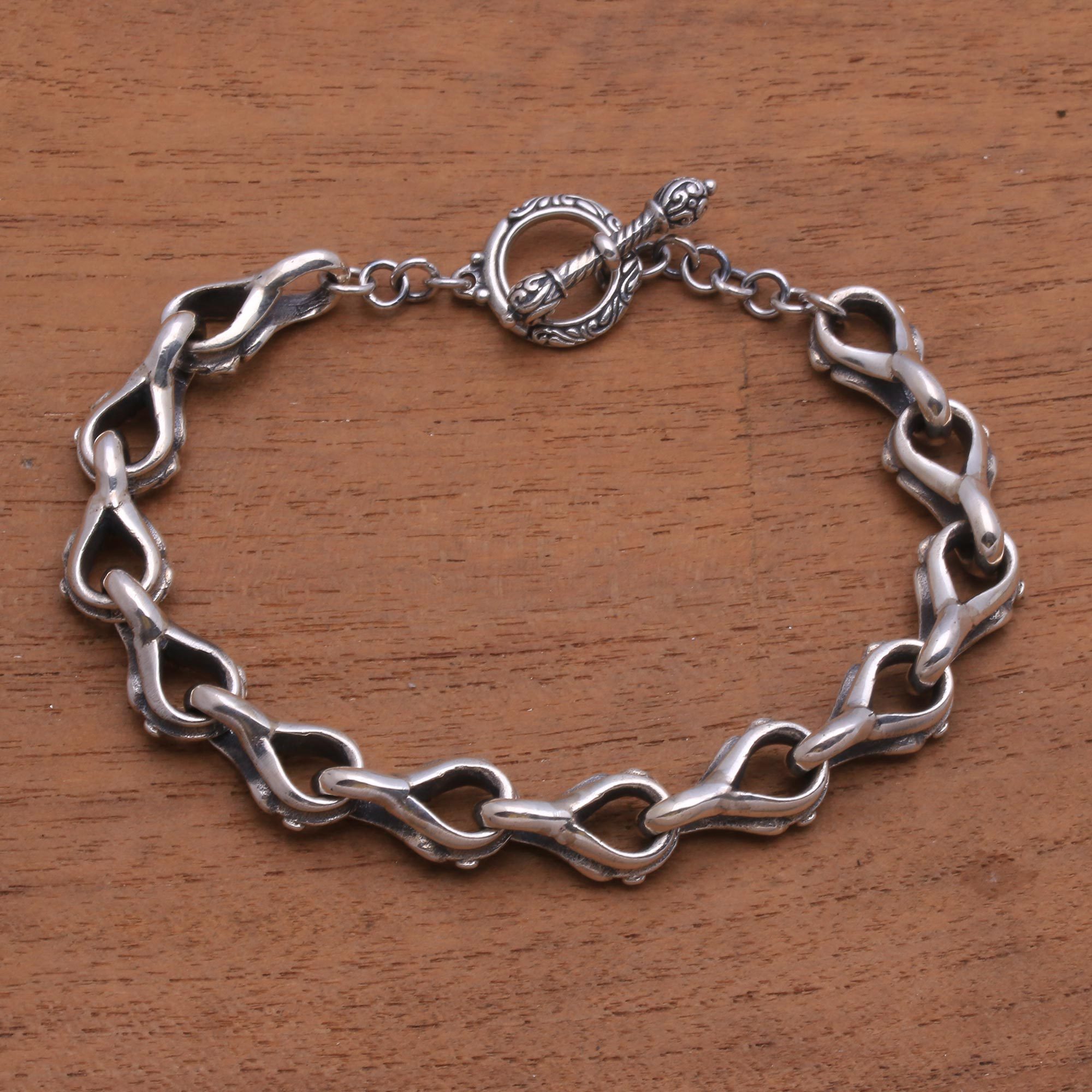 Shaped like teardrops, bold links are crafted from sterling silver and given a combination of finishes. Baliense artisan Dewa Arimbawa creates this striking bracelet.