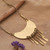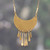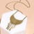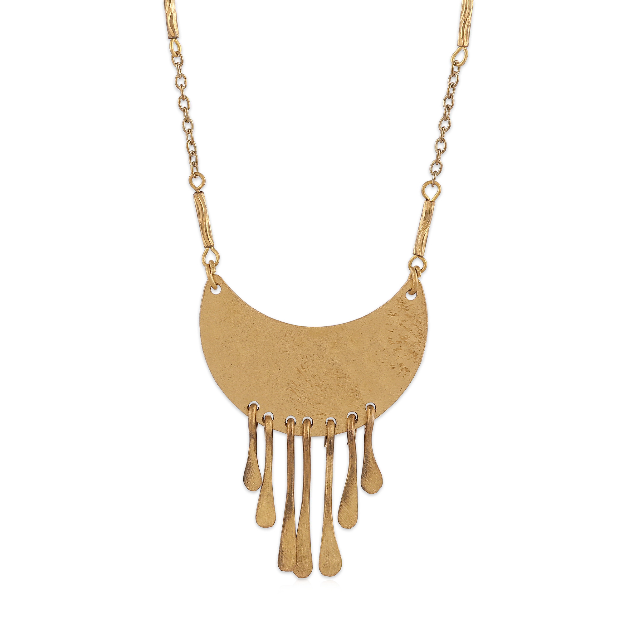 This antique-finished long pendant necklace crafted from brass adds a touch of bold sophistication to any outfit. It features an elegant bar chain and a charming crescent moon motif with a hammered finish from which dangles of different lengths gracefully sway, infusing Indian artisan Sabir's captivating creation with movement.