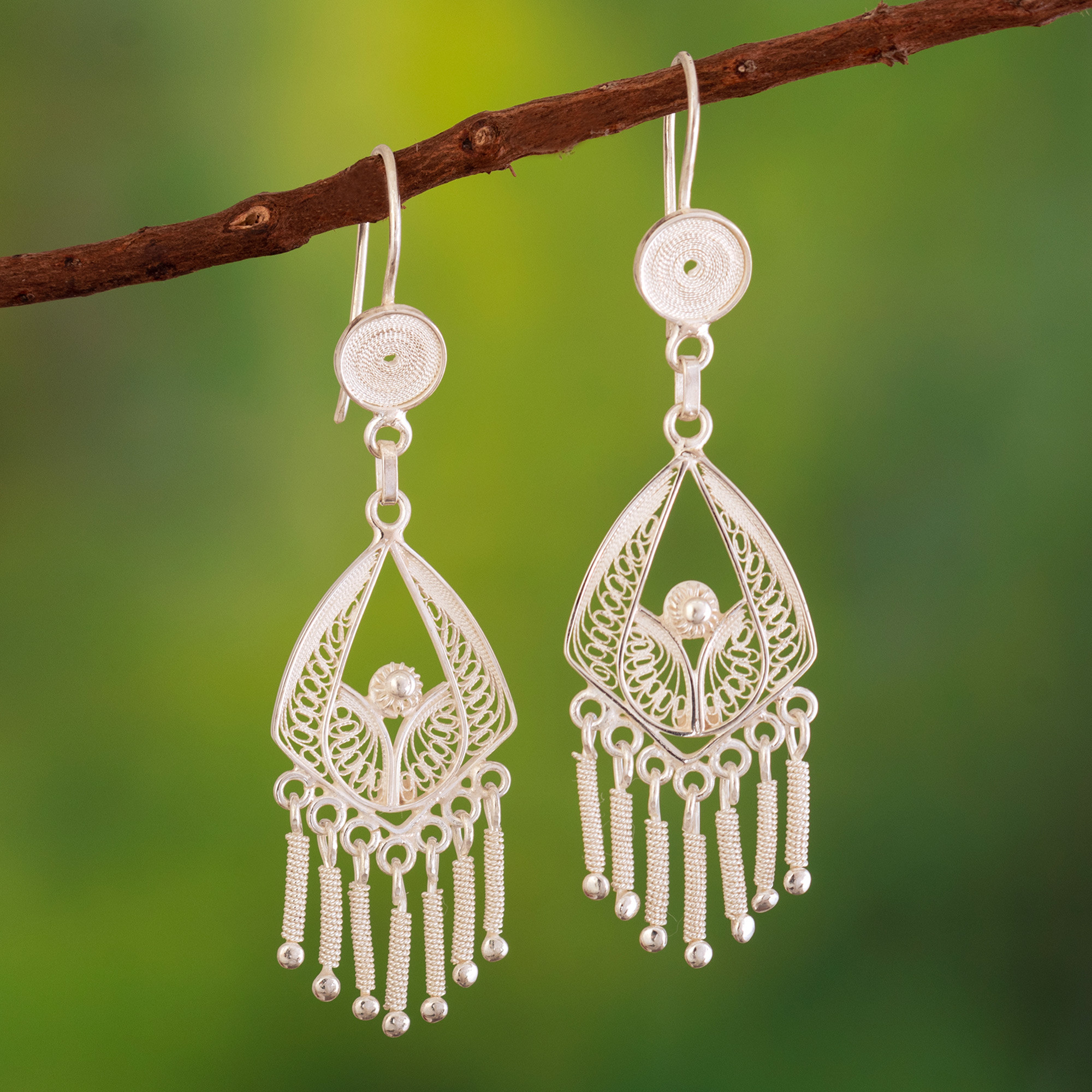 Bridal Sterling Silver Chandelier Earrings from Peru, 'Inca Royal'