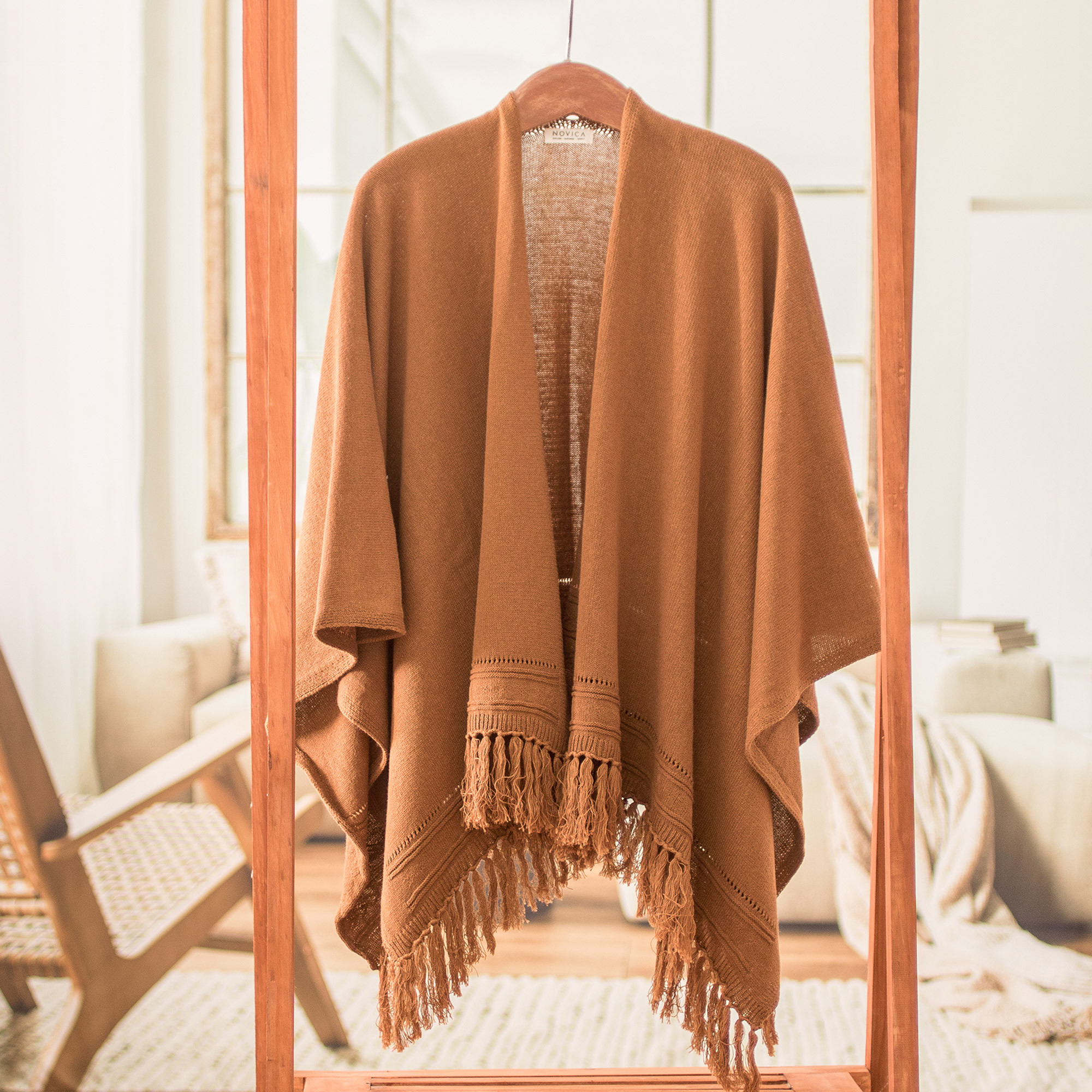 Natural cotton farmed on the family lands of Luisa Villavicencio in Guatemala, features no dyes to create their unique colors. She designs this trendy ruana as a light-weight layer perfect for spring and summer fashion with a fringed hem for a boho touch.
