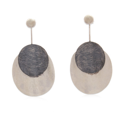 Moons in blue and silver invite you to wear their elegance every night. These sterling silver drop earrings, by Mexico's Carlos and Cynthia Rendon, combine metal finishes to allow for a unique look. Brushed details add an aura of abstract beauty and grace, making them the perfect complement for any occasion.