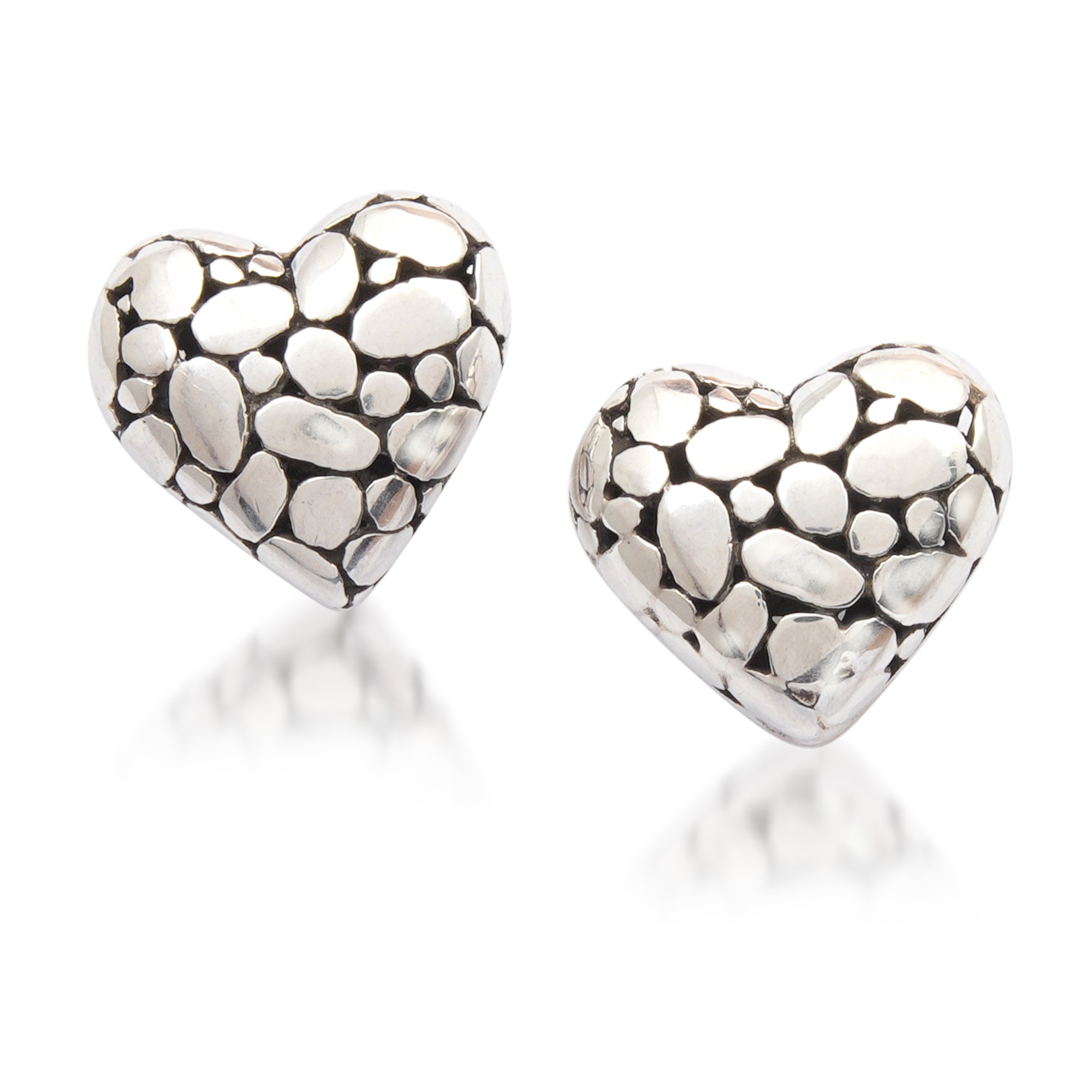 Bubble details in polished and oxidized finishes take their effervescent charm to this romantic sterling silver pair. Artisan Made Sugi captures a glimpse of the region's bold nature in these heart-shaped button earrings, crafted following Bali's jewelry techniques to captivate those with a passionate soul.