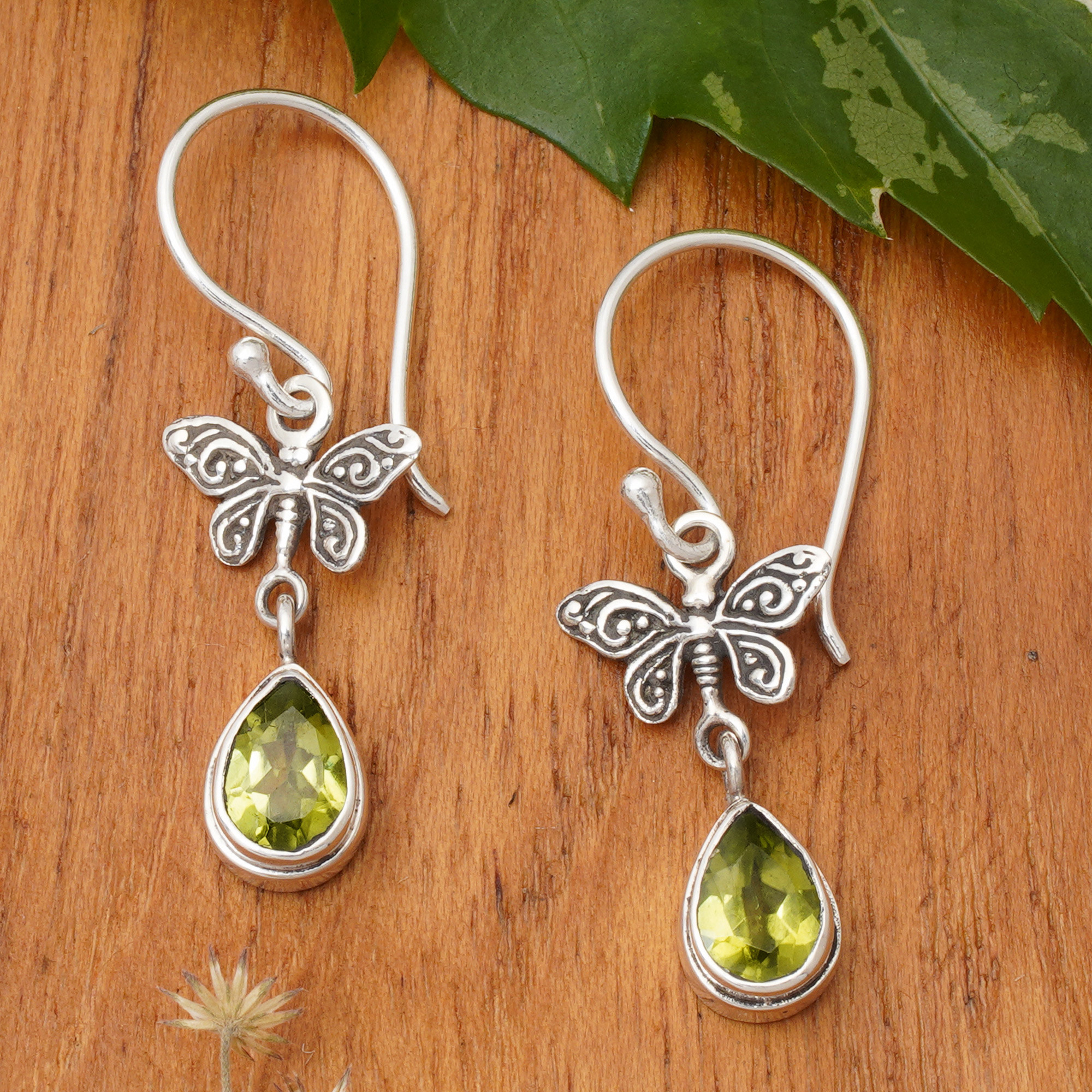 Butterfly-Inspired 1-Carat Natural Peridot Dangle Earrings, 'Lucky Flutter'