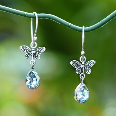 Butterfly-Themed 2-Carat Blue Topaz Silver Dangle Earrings, 'Precious Flutter'