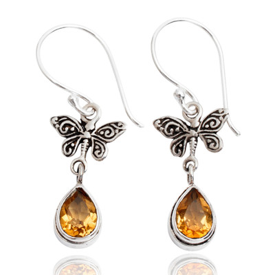 These sterling silver butterfly earrings flutter with unexpected sophistication, their delicate silhouettes cradling brilliant citrine gemstones that catch the light beautifully. Balinese artisan Anya's masterful technique blends polished and oxidized silver surfaces, creating depth and drama that transforms these whimsical creatures into statement pieces. Whether you're conquering boardroom presentations or dancing under starlight, these versatile danglers adapt to your every mood with effortless grace.