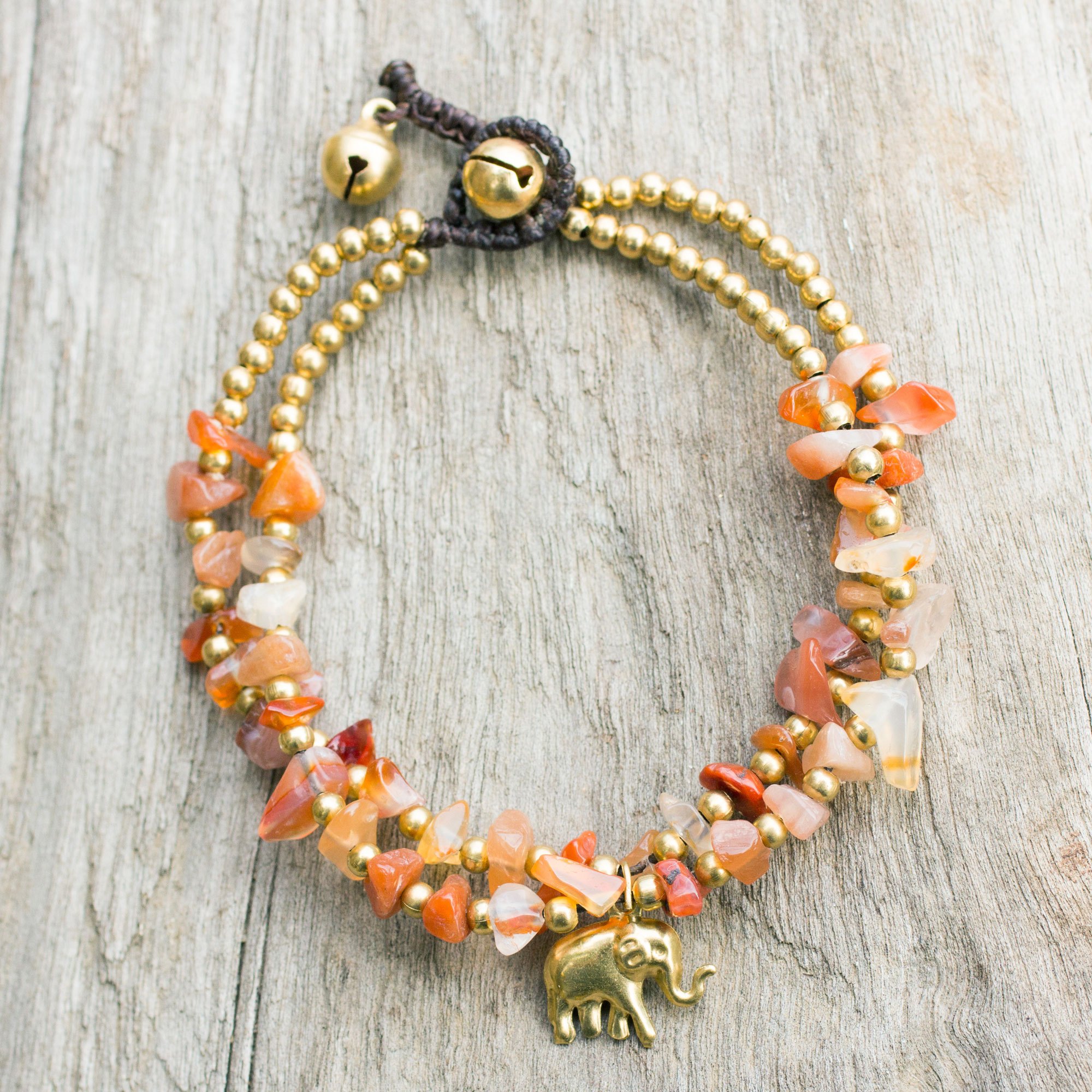 Carnelian and Brass Beaded Elephant Bracelet from Thailand, 'Bright Elephant'
