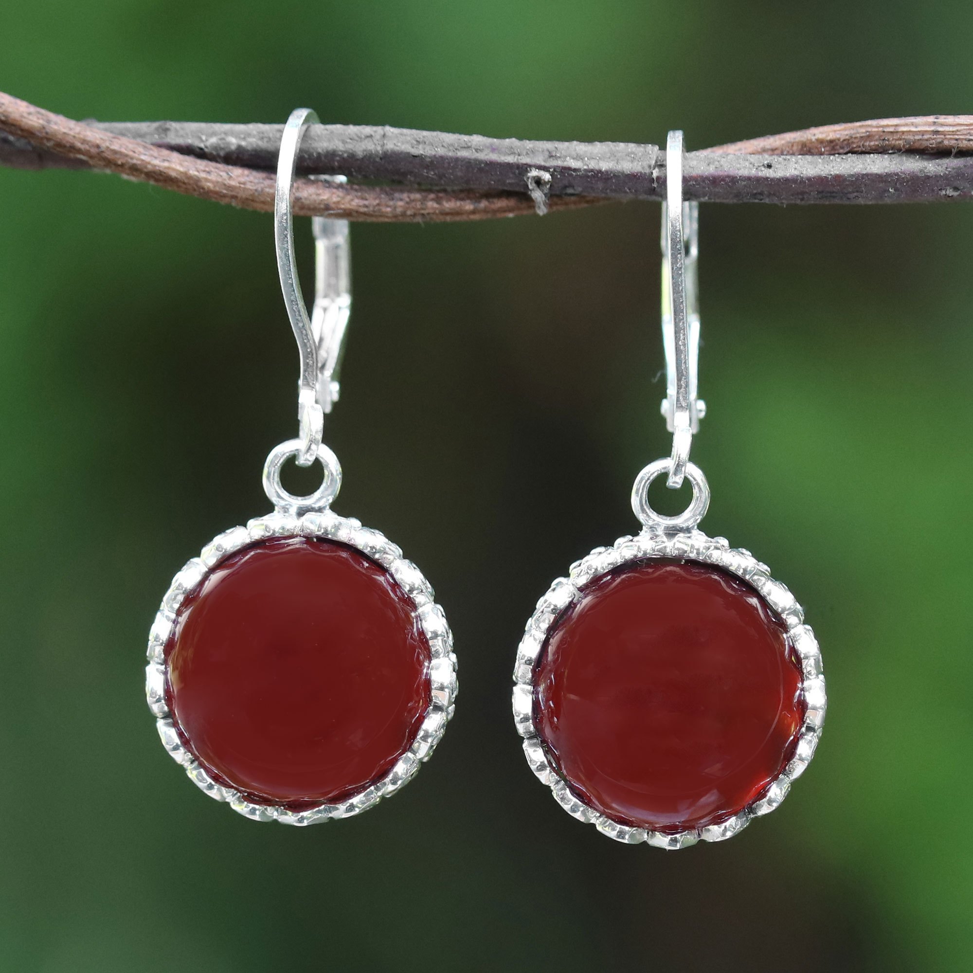 Carnelian and Sterling Silver Dangle Earrings from Thailand, 'Pointed Petals'