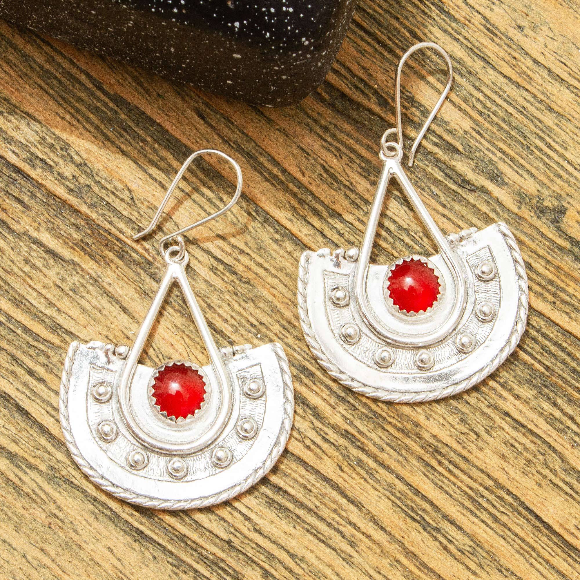Carnelian and Sterling Silver Dangle Earrings, 'Embers'